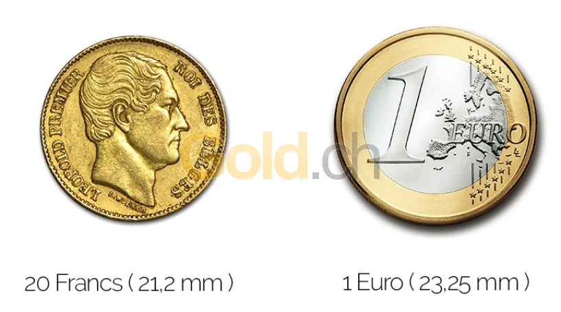 Größenvergleich Belgien Francs Goldmünze mit 1 Euro-Stück