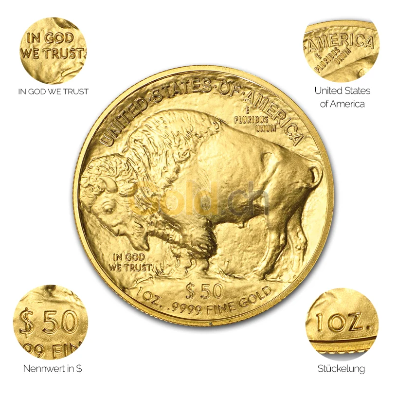 Im Jahre 2006 wurde der erste American Buffalo aus Gold geprägt. Die Goldmünze zeigt das Porträt eines amerikanischen Ureinwohners. Auf der Rückseite ist ein nordamerikanischer Büffel zu sehen, von dem sich der Name „American Buffalo“ ableitet. In den USA trägt die Goldmünze auch den Namen "Buffalo Gold Coin". Die Buffalo Goldmünze aus dem Hause der United States Mint, der Münzprägeanstalt der Vereinigten Staaten von Amerika, wird seit 2006 in der Stückelung zu 1 oz (1 Feinunze Gold) in Serie produziert. Der Nennwert der Goldmünze entspricht 50 Dollar. Sie ist die erste Feingold-Anlagemünze, die von der US Mint geprägt wurde. Im Jahre 2008 ergänzten die Stückelungen zu ½ oz, ¼ oz und 1/10 oz die Auswahl der Goldmünzen. Der Feingehalt der Münze entspricht 99,99 % (24 Karat) Feingold. Manche Buffalo Goldmünzen weisen ein kleines W auf, das als Prägemarke auf die Produktion an einem weiteren Standort der United States Mint "West Point" in New York, USA verweist. Dort werden die Buffalo-Gold-Münzen in diversen Unzen (oz) und Dollarangaben geprägt. Die Beliebtheit des Motivs und ein steigender Goldpreis zwischen 2006 und 2011 führten zu schnellen Wertsteigerungen der ersten Ausgaben. Nicht nur in den USA (United States) erfreut sich die Goldmünze in verschiedenen Unzen größter Beliebtheit. Auch international feiern Sammler und Anleger den „American Buffalo“. Neben der Bullionmünze ist die Goldmünze aus dem Hause der US Mint auch als Polierte Platte verfügbar.