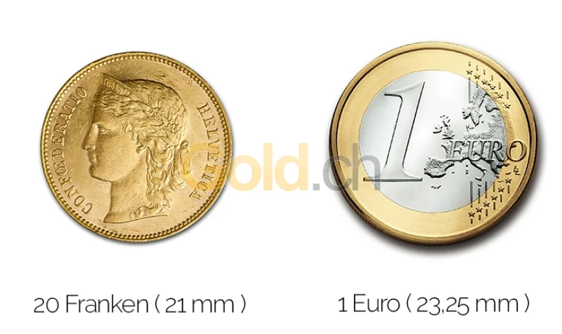 Größenvergleich Helvetia Goldmünze mit 1 Euro-Stück