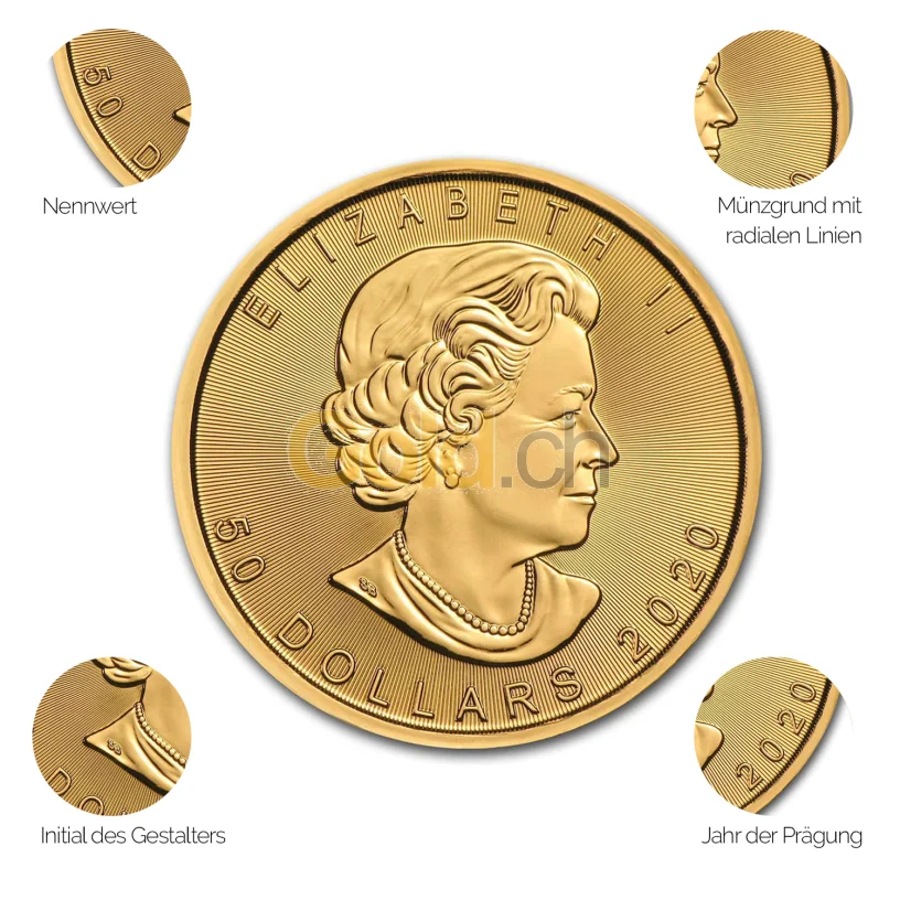 Die Maple Leaf Goldmünze wird bereits seit ihrem ersten Prägejahr 1979 mit den gleichen Motiven produziert. Zum Einsatz kommt Prägequalität Stempelglanz, welche die Darstellungen detailreich hervorhebt. Seit 2015 stellt sich der zuvor glatte Münzgrund mit attraktiver, hochfeiner Struktur dar. Eine Gravur aus radialen Linien erzeugen ein elegantes Muster im Mikrometerbereich, das je nach Lichteinfall faszinierende Effekte hervorruft. Dadurch erhält die ohnehin schon charakteristische Münze ein dekoratives Alleinstellungsmerkmal, das zudem der Fälschungssicherheit dient.