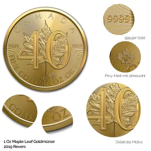 2019 Maple Leaf Gold zum 40. Prägejubiläum