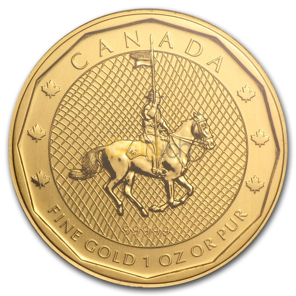Eine weitere kanadische Goldmünze ist der „Mountie“. Die Vorderseite der begehrten Anlagemünze zeigt einen berittenen Mountie. Mounties gehören in Kanada zur Polizei und reiten noch wie in früheren Zeiten durch die Straßen. Sie sind vor allem in den Provinzen Quebec und Ontario zu finden. Die Goldmünze verfügt über eine zwölfeckige Prägeform auf einer runden Goldmünze. Sie ist eine noch recht junge Anlagemünze und wurde erst 2011 herausgegeben. Dennoch gilt sie bereits als äußerst beliebt unter Sammlern. Die Rückseite bezaubert wie alle kanadischen Münzen, durch das Abbild der englischen Elizabeth II. Neben dem Maple Leaf zählt sie im Übrigem zu den beliebtesten kanadischen Anlagemünzen und weist eine außerordentlich gute Prägequalität auf.