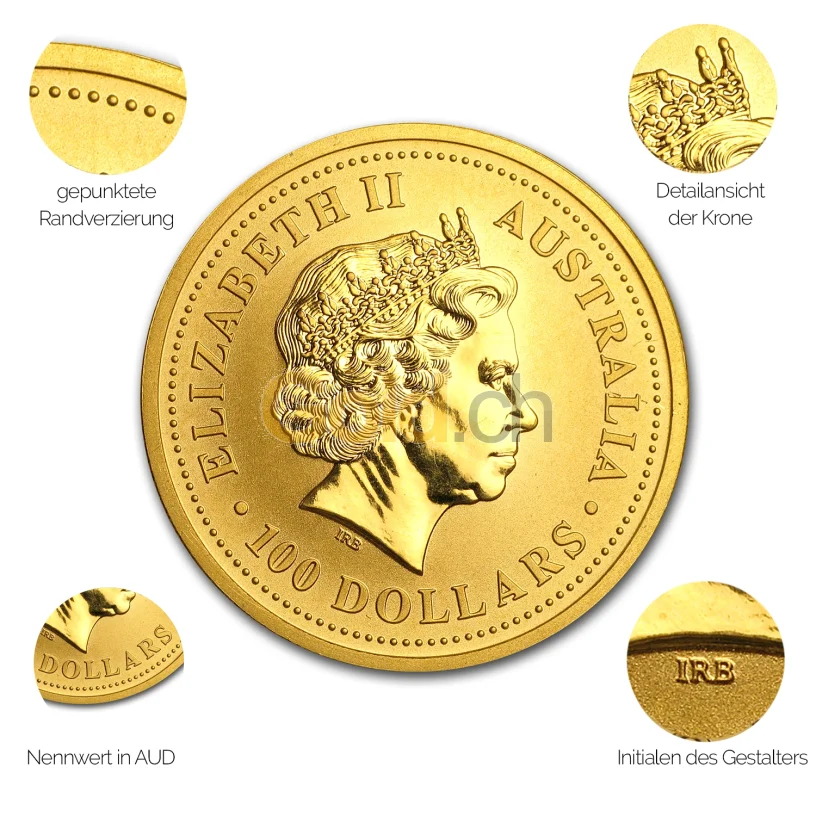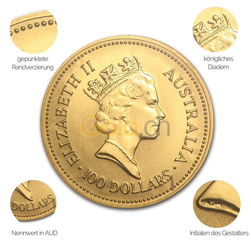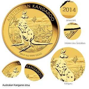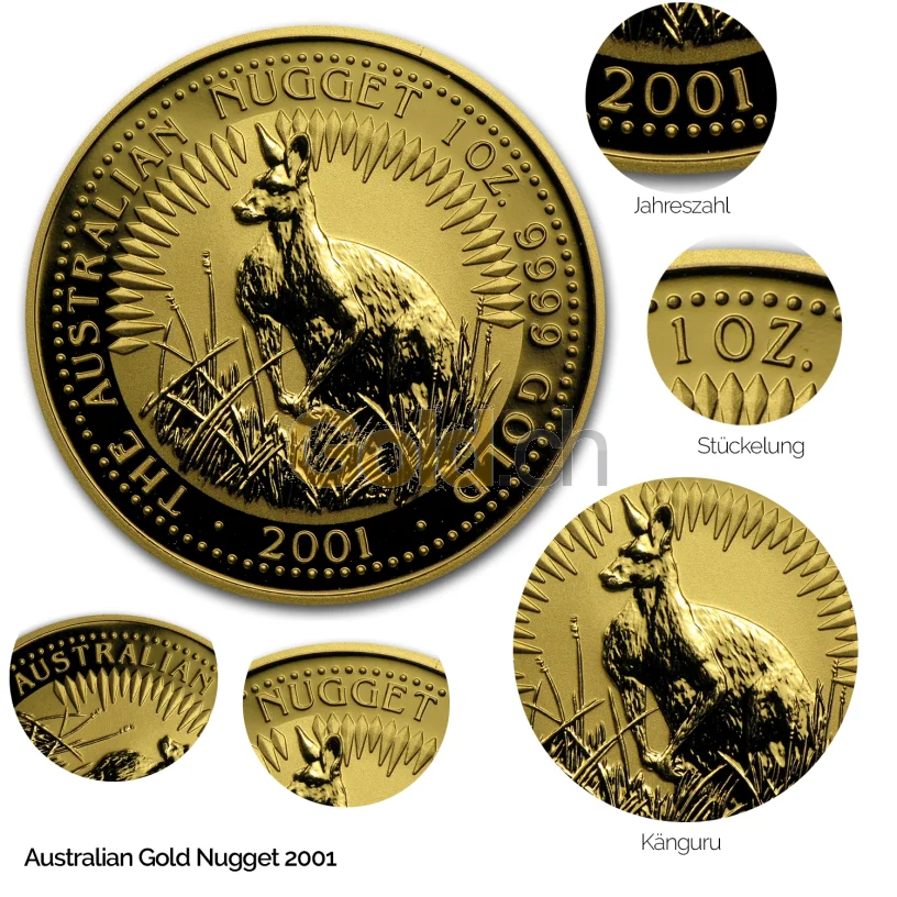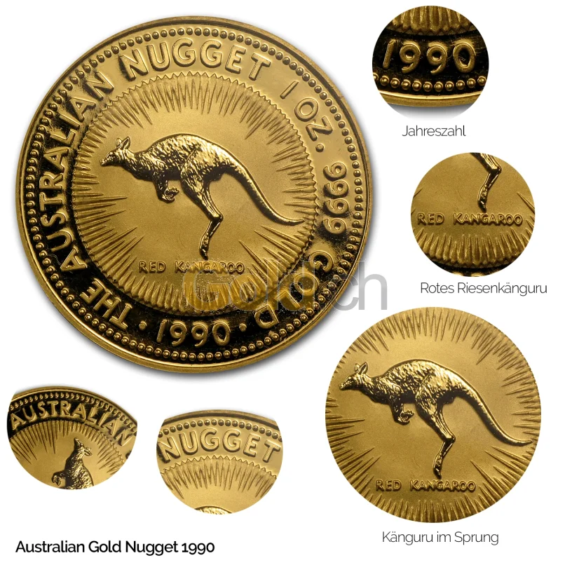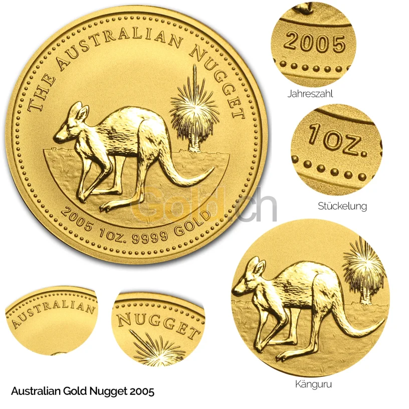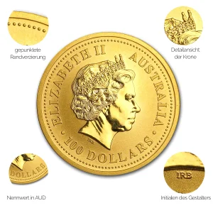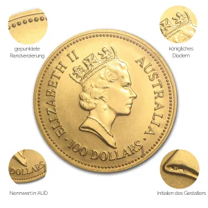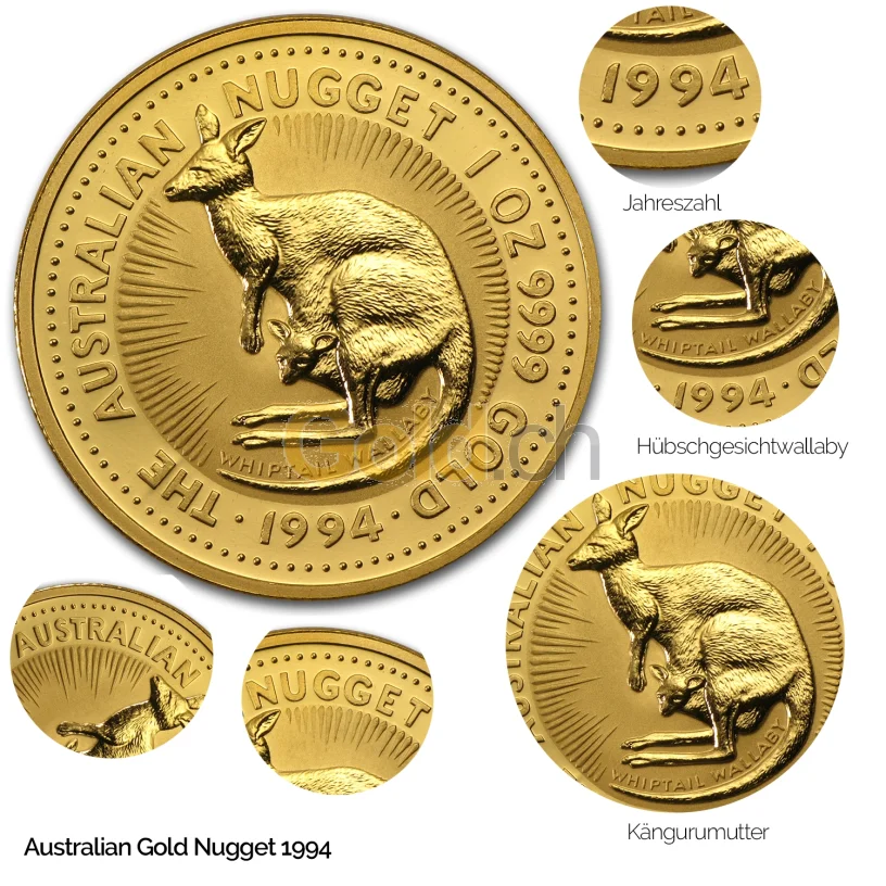 Die Anlagemünze aus dem Hause der australischen Prägeanstalt Perth Mint trägt auf einer Seite das Porträt der Königin des Commonwealth: Elisabeth II. Auf der anderen Münzseite war in den ersten vier Jahren der Prägung ein Gold-Nugget zu sehen, die darauffolgenden Jahre das Nationaltier Australiens: das Känguru.