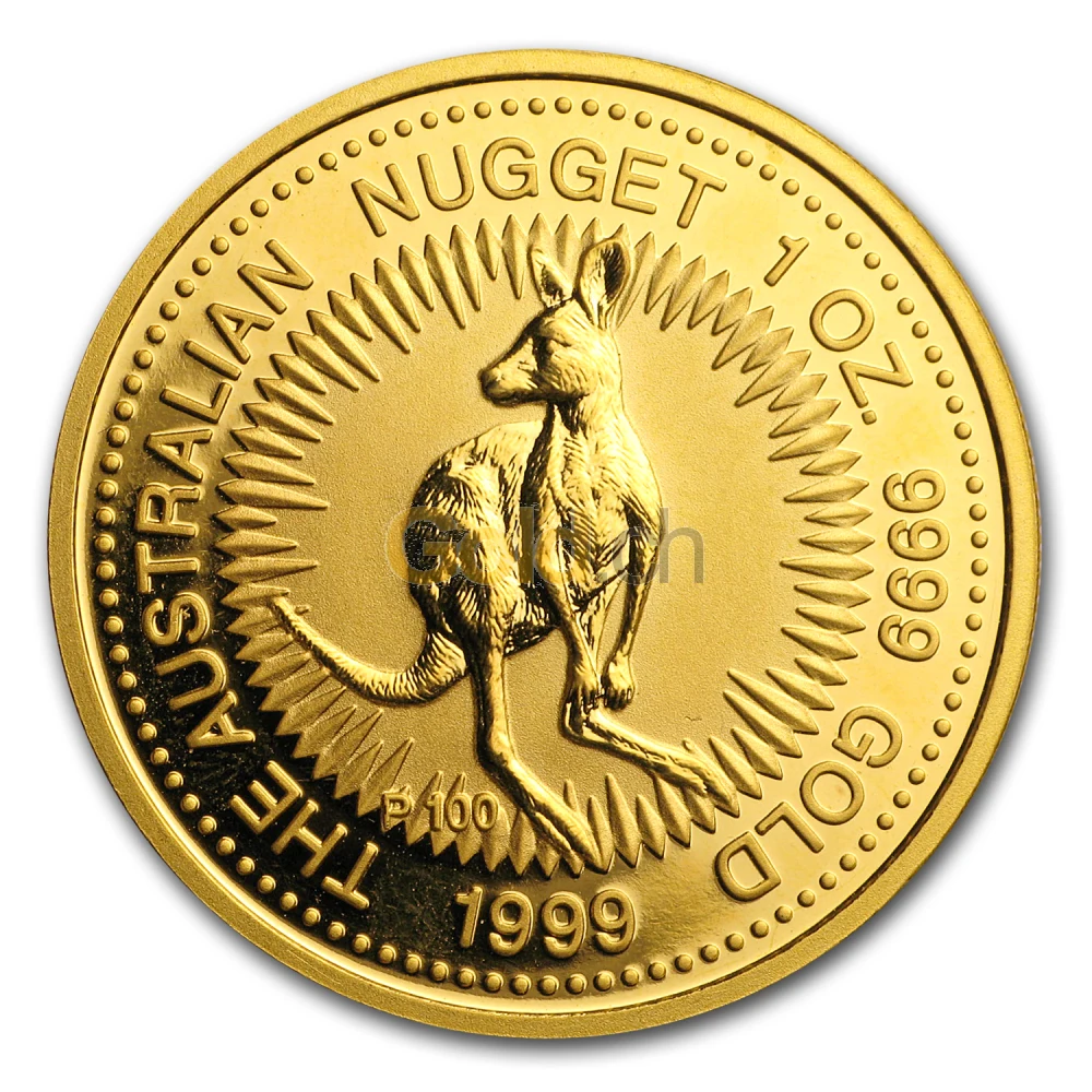 Das Känguru auf der „Australian Nugget“-Münze aus dem Jahre 1999 blickt zur linken Seite der Münze. Seine aufgerichteten Ohren, der Schwanz und die Beine überschneiden sich mit dem Strahlenkreis, der das Känguru umgibt. Die Fellstruktur des stehenden Tieres wird bei dieser Prägung deutlich.