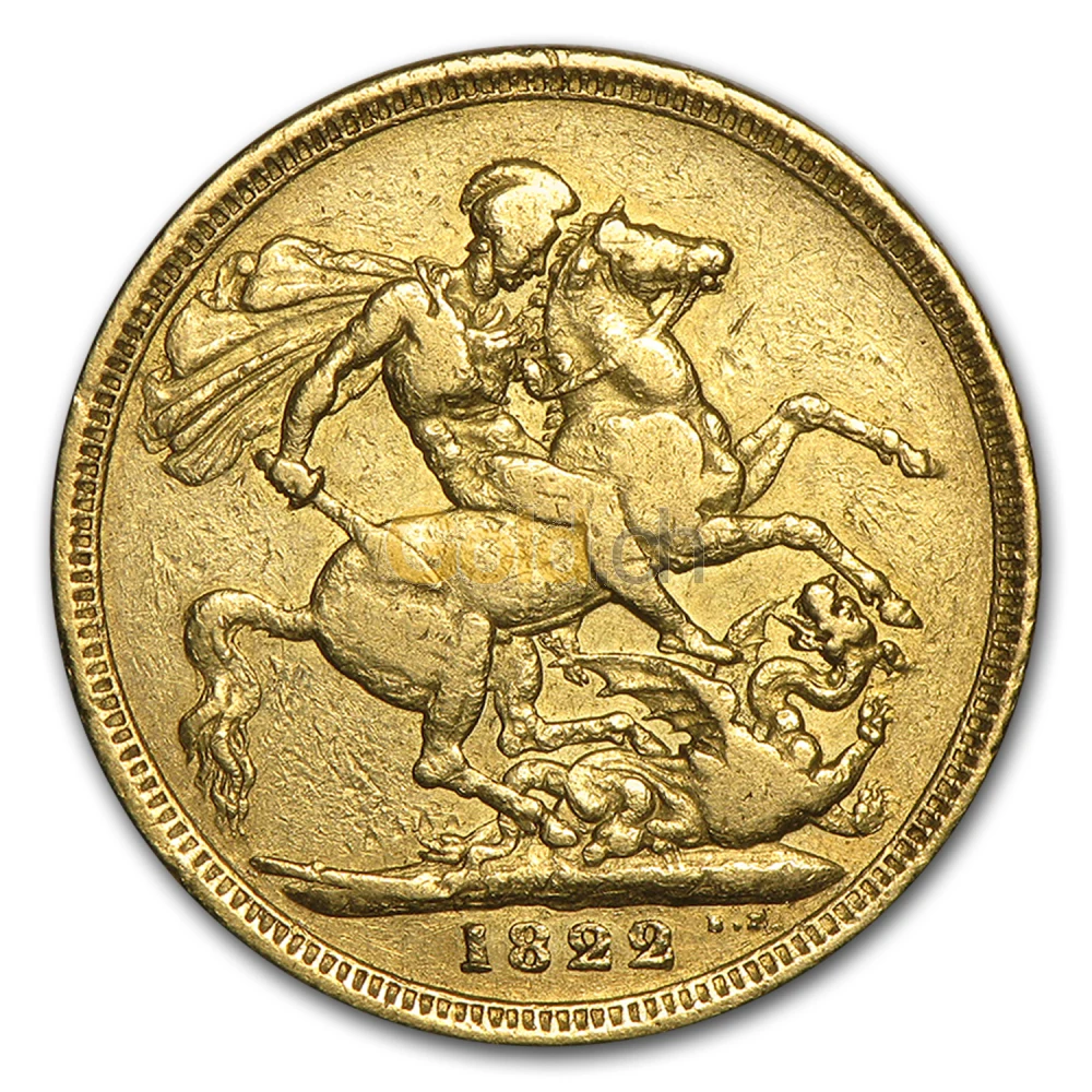 Der Überlieferung nach wurde das libysche Dorf Silena im 3. Jahrhundert nach Christus von einem giftigen Drachen beherrscht. Um die gefräßige Bestie zu besänftigen, brachten ihm die Dorfbewohner zunächst Tieropfer und später Menschenopfer dar, die per Los ausgewählt wurden. Eines Tages traf es die einzige Tochter des Königs, der vergeblich versuchte, die junge Frau bei den Dorfbewohnern freizukaufen. So wartete die Königstochter am See auf ihren sicheren Tod, als der edle Ritter Georg auf seinem Pferd erschien. Unerschrocken nahm er den Kampf mit dem Drachen auf und tötete ihn schließlich mit seinem Schwert. Dadurch rettete er nicht nur das Leben der Prinzessin, sondern befreite auch die Einwohner von ihrem Martyrium. Später wurde Ritter Georg heiliggesprochen und zum Schutzpatron Großbritanniens ernannt. Noch heute ist das rote Kreuzwappen St. Georges, das sogenannte Georgskreuz, Teil der britischen Nationalflagge. Zwischen 1815 und 1817 entwarf der italienische Graveur Benedetto Pistrucci das bis heute verwendete Motiv der legendären Kampfszene für den Goldsovereign.