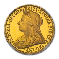 Während die Rückseite des Sovereign Victoria die historische Kampfszene St. Georges mit dem Drachen darstellt, zeigt der Avers die ältere Queen Victoria mit Krone, Perlenkette und Perlohrringen. Sie trägt ein prächtiges Gewand.