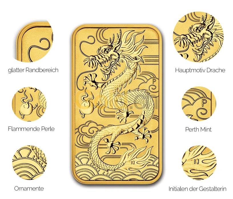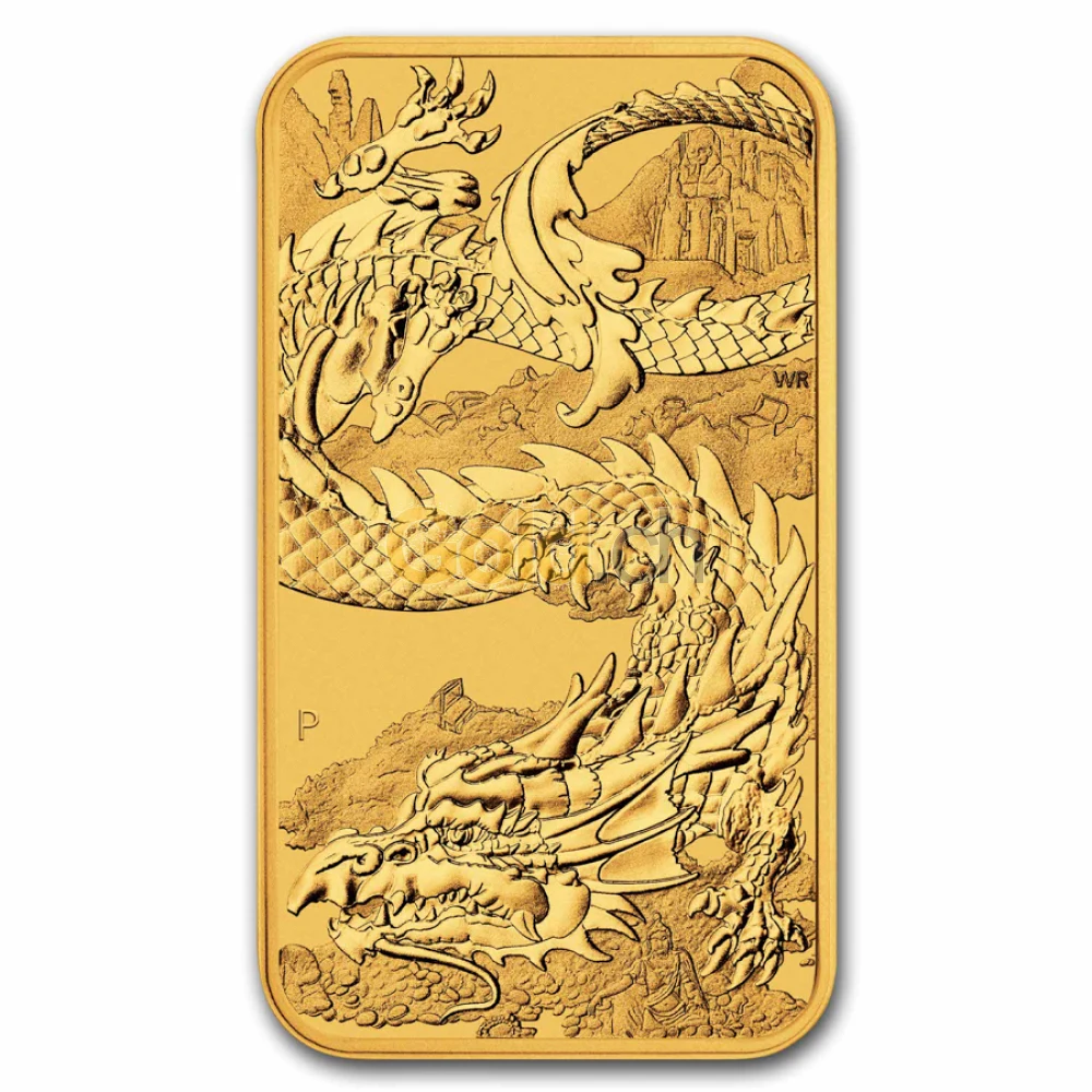 Der Münzbarren „Dragon Rectangular“ ist ein ausgezeichnetes Beispiel für eine gelungene Motivdarstellung, inspiriert durch die erfolgreichen fernöstlichen Motive der australischen Münzserie im Namen des Mondes (Australian Lunar Coin Series). Der Drache ist ein himmlisches Wesen und wird mit dem Mond in Verbindung gesetzt.