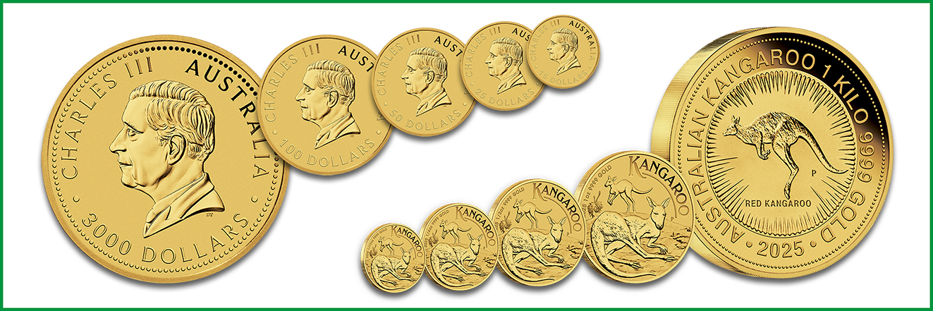 Die Münzserie Australian Känguru gehört zu den beliebtesten Anlageprodukten, die weltweit gehandelt werden. In der Goldversion wird sie seit 1986 von der Perth Mint mit jährlich wechselnden Motiven ausgegeben. Seit 2015 erscheint ebenfalls ein Silber-Känguru mit einem gleichbleibenden Motiv, das seit 2018 auch als Platinausgabe verfügbar ist. Darüber hinaus sind Sammlerversionen auf Polierter Platte in Gold und Silber erhältlich. Jetzt erscheinen die neuen Bullionmünzen für den Jahrgang 2025 in drei Edelmetallen.
