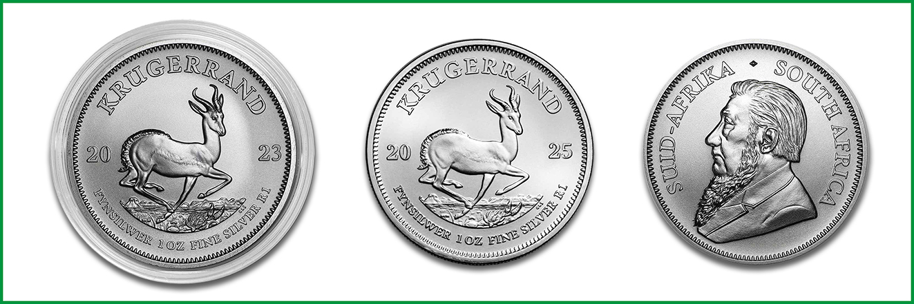 Während der Gold Krügerrand seit 1967 geprägt wird und als älteste Bullionmünze der Welt gilt, wurde Krügerrand als Silbermünze erstmals 2017 von der South African Mint (SA Mint) zu 1 Unze aufgelegt. Seit 2020 ist auch eine Einheit zu 2 Unzen erhältlich. Identisch ist bei beiden Edelmetallen das immer gleiche Design, das auf der Bildseite den bekannten Springbock in der afrikanischen Steppe zeigt. Die Antilope ist das Nationaltier Südafrikas. Im Gegensatz zur Goldausgabe ist beim Silber Krügerrand auch ein Nennwert über 1 Südafrikanischer Rand (ZAR) aufgeprägt. Der Avers ist dem Politiker Paul Kruger gewidmet, der die Republik Südafrika von 1883 bis 1900 als erster Präsident führte. Anleger können Krügerrand Silber zu 1 Unze einzeln erwerben sowie in der Tube zu 25 Stück oder in der Masterbox mit insgesamt 500 Münzen.