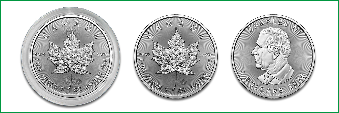 Die Silbermünze Maple Leaf wird bereits seit 1988 von der Royal Canadian Mint (RCM) herausgegeben. Sie zählt zu den beliebtesten Bullionmünzen zu einer Unze. Dabei ist das gefragte Edelmetall auch in anderen Stückelungen von 1/2 Unze bis 10 Kilogramm erhältlich. Der Klassiker wird mit dem jährlich gleichbleibenden Motiv des einzelnen Ahornblatts geprägt, dem Symbol Kanadas. Die Vorderseite bildet das Staatsoberhaupt ab, für den aktuellen Jahrgang ist das King Charles III. Entworfen wurde es von Steven Rosati.