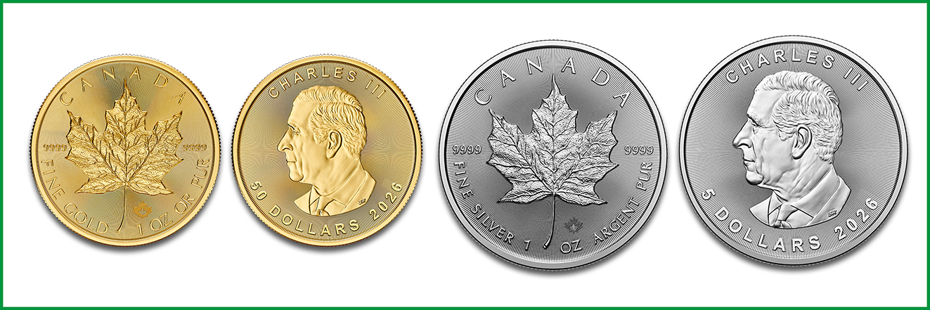 Mit jährlich identischen Motiven bringt die Royal Canadian Mint seit 1979 die Anlagenmünze Maple Leaf heraus. Sie stellt auf Ihrer Bildseite das Nationalzeichen Kanadas, das Ahornblatt dar. Der Hintergrund wird aus hochfeinen radialen Linien gebildet, die der Fälschungssicherheit dienten. Ergänzt wird das Design durch ein winziges Ahornblatt, das mithilfe einer Lasertechnologie mikrograviert ist. Mit einer Lupe lässt sich darin die Jahreszahl 26 ausmachen. Den Avers bestimmt einmal mehr das kanadische Staatsoberhaupt König Charles III. nach Steven Rosati. Ergänzt ist der Nennwert in Kanadische Dollar (CAD).