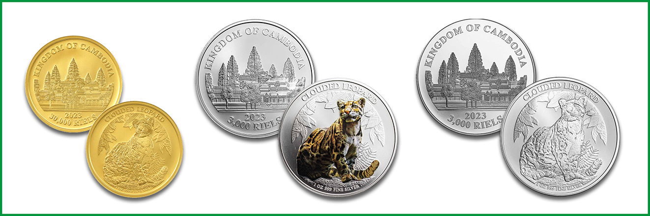 Als Agenturausgaben erscheinen die Tiermotive aus der neuen Münzserie »Kambodscha Wildlife«. Die erste Ausgabe ist dem Clouded Leopard gewidmet. Der Nebelparder stellt eine Großkatze dar, die im südöstlichen Teil Asiens beheimatet ist. Sie ähnelt einem Leoparden, besitzt aber eine kleinere Statur. Die Serie erscheint in drei unterschiedlichen Ausführungen als Goldmünze, Silbermünze und Silberfarbmünze. Verausgabt wird die Nebelparder-Münze vom Königreich Kambodscha in Südostasien. Daher ist ihr Nennwert in der Landeswährung kambodschanischer Riel (KHR) ausgeführt.
