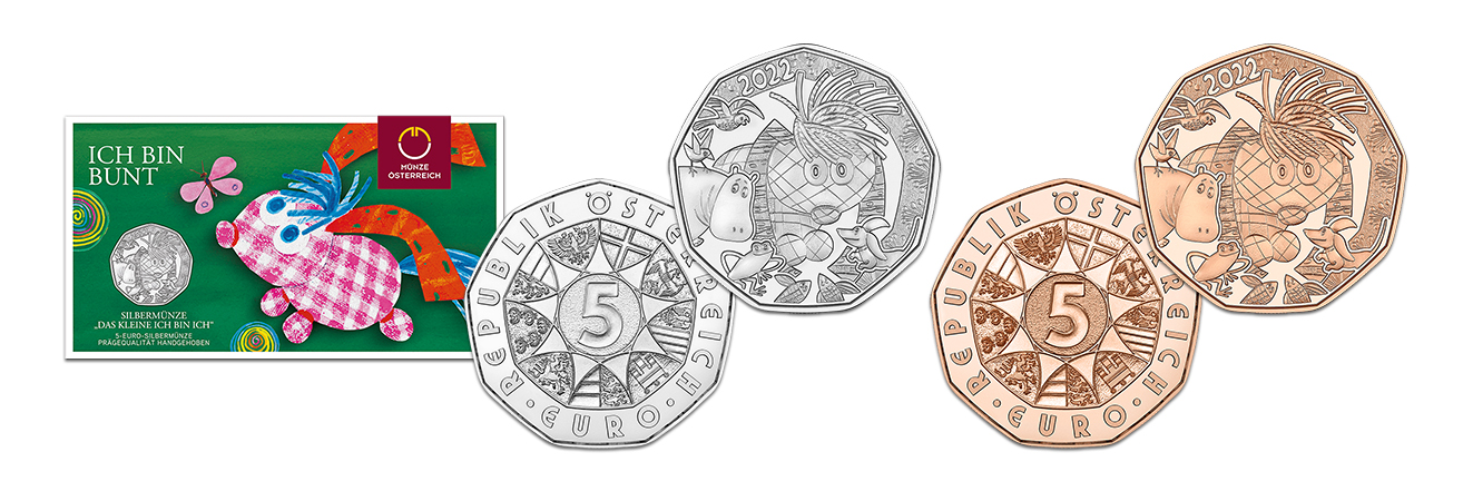 Aus der Serie der Ostermünzen verausgabt die Münze Österreich in diesem Jahr das Motiv: »Das kleine Ich bin Ich«. Es ist dem gleichnamigen Kinderbuch von 1972 gewidmet, das ein Fantasietier zur zentralen Figur macht. Dies hat Ohren wie ein Dackel, Fransenhaare wie ein Pony und Stampfbeine wie ein Nilpferd. Die originalen Illustrationen stammen von Susi Weigel. Die Graveure Helmut Andexlinger und Anna Rastl orientierten sich bei ihrem Entwurf eng an den klassischen Zeichnungen. Die Wertseite stellt als Kontrast die neun österreichischen Landeswappen im Kreis dar.