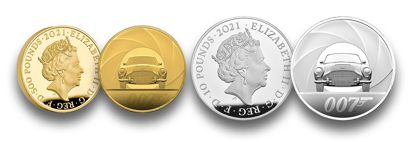 In streng limitierter Auflage verausgabte die Royal Mint überdies die 2021er Special Edition einer James Bond-Münze zu 10 Unzen in Gold und Silber. Der Revers zeigt den Aston Martin DB5 in der Gewehrlauf-Grafik in Kombination mit dem 007-Logo. Erstmals trägt das Kultauto ein italienisches Kennzeichen. Die beiden Großmünzen sind in Qualität Polierte Platte geprägt und bestehen aus 999/1000 Gold bzw. Silber. Das Bildseiten-Design stammt von der britischen Künstlerin Laura Clancy (LC), während der Avers das bekannte Queen-Portrait von Jody Clark (JC) zusammen mit dem Nennwert und der Jahreszahl abbildet. Auch bei dieser Version wurde zugunsten der Motive auf die Prägung von Feingehalt und Stückelung verzichtet. Wie bei Sammlermünzen dieser Güte üblich werden die 10 Unzen-Ausgaben einzeln gekapselt im Etui mit Echtheitszertifikat angeboten.