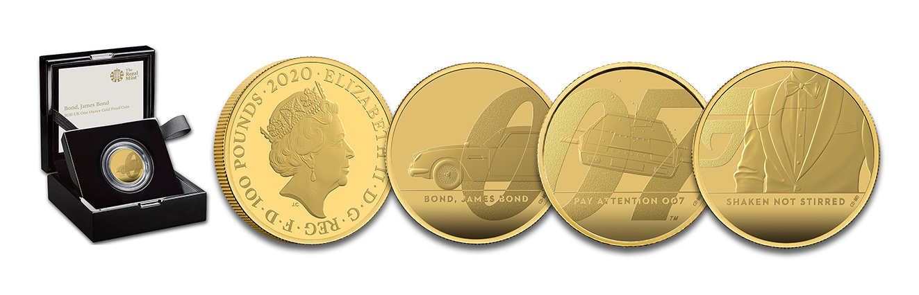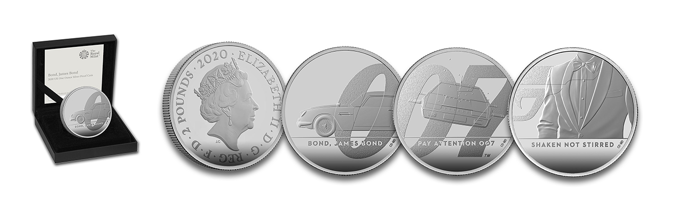 Gewidmet ist die Münzserie den klassischen Momenten aus der James Bond-Filmreihe. Dabei bilden drei unterschiedliche Motive die Basis der Edition: Der Aston Martin DB5 mit dem Titel »BOND, JAMES BOND«, das Amphibienfahrzeug Wet Nellie mit »PAY ATTENTION 007« sowie der berühmte Smoking des Agenten mit dem Prädikat »SHAKEN NOT STIRRED«. In der richtigen Reihenfolge nebeneinander gelegt ergeben die drei Designs das 007-Waffenlogo.