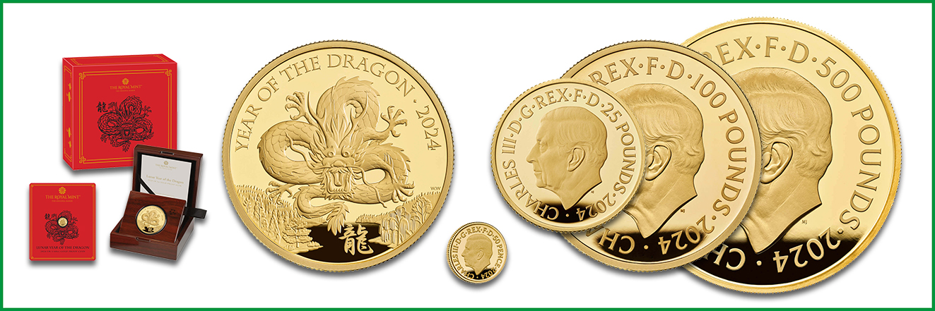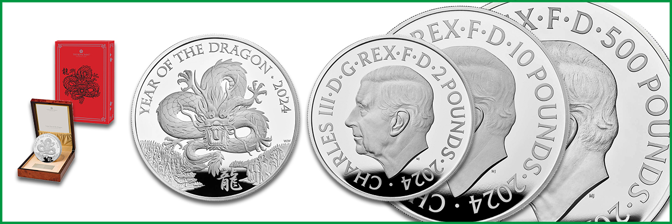 Mit ihren detailreichen Motiven beeindrucken die Neuheiten für Sammler und Anleger zum chinesischen Neujahrsfest, das am 10. Februar 2024 beginnt. Sie erscheinen im Jahr des Holzdrachen, der traditionell als Glücksbringer gilt. Er symbolisiert Kraft, Stärke und Energie. Die Verbundenheit mit dem Element Holz, das dem Drachen für 2024 zugeteilt ist, verspricht zudem Wachstum und Entwicklung. Die Perth Mint bringt gleich sechs verschiedene Münzen aus der beliebten Serie Lunar III in besonderen Prägequalitäten heraus. Dazu präsentiert die britische Royal Mint ihre Gold- und Silberausgaben aus der Lunar UK-Serie auf Polierter Platte. Die New Zealand Mint ergänzt mit Bullionmünzen in beiden Edelmetallen. Darüber hinaus verausgabt die Scottsdale Mint Goldbarren mit Drachenmotiven. Alle Motive widmen sich dem chinesischen Mondkalender der zwölf rotierenden Tierkreiszeichen.