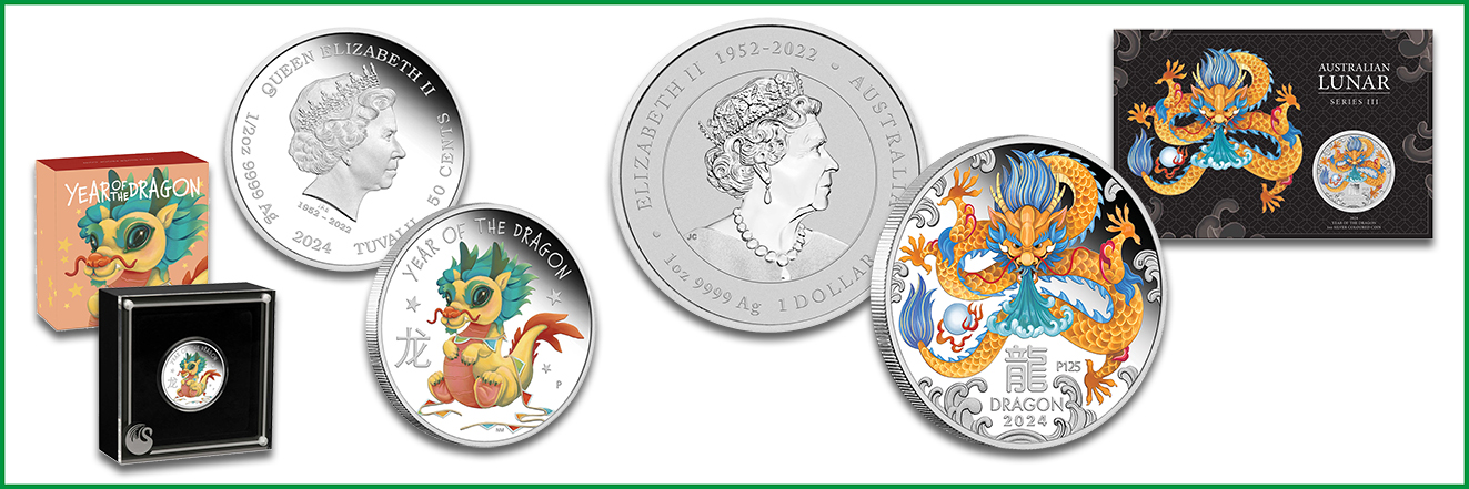 Bullionmünze Year of the Dragon 2024 in Gold und Silber