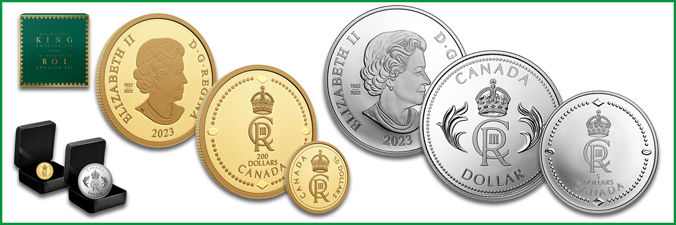 Zur Erinnerung an die feierliche Krönung von Charles III. zum König von England und der Commonwealth-Staaten hat die RCM eine neue Königsserie in Gold und Silber herausgebracht. Sie zeigen erstmals auf dem Revers einer kanadischen Münze die königliche Chiffre (Royal Cypher) von King Charles III. »CRIII« mit der Imperial State Crone. Im Münzboden ist der Nennwert ergänzt. Der Avers repräsentiert klassisch das Bildnis Queen Elizabeth II. inklusive dem Prägejahr 2023.
