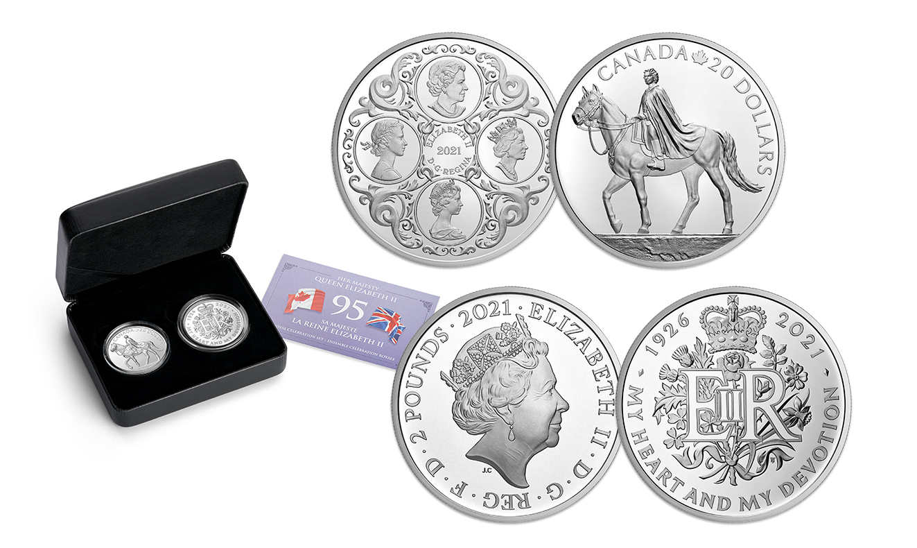 In einer Partnerschaft zelebrieren Royal Mint und Royal Canadian Mint den königlichen Geburtstag mit einem exklusiven Set, das gleich zwei 1 Unzen-Silbermünzen in Qualität Polierte Platte enthält. Der einzeln gekapselte Münzsatz ist auf 6.500 Stück limitiert und wird in einem schwarzen Etui mit nummeriertem Echtheitszertifikat angeboten.