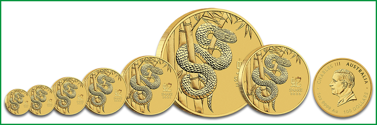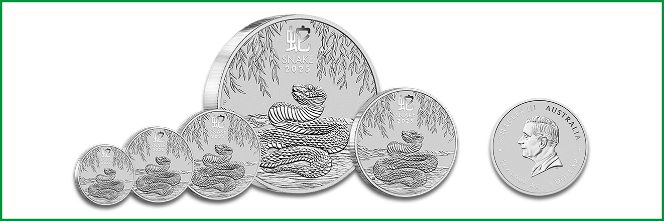 Alljährlich im Herbst erscheinen die neuen Münzdesigns aus der Serie Lunar III für das kommende Jahr. Aktuell stellt die australische Münzprägestätte Perth Mint die Motive für den Jahrgang 2025 vor, der ab dem 16. September 2024 im Edelmetallfachhandel verfügbar ist. Die Reihe folgt dem chinesischen Mondkalender und stellt auf der Bildseite eine Schlange dar, wobei sich die Motive der Gold- und Silbermünze unterscheiden. Erhältlich ist Lunar Serie III in Bullionqualität für Anleger aus Gold, Platin und Silber sowie auf Polierter Platte für Sammler in Gold und Silber. Es sind viele unterschiedliche Stückelungen verfügbar.