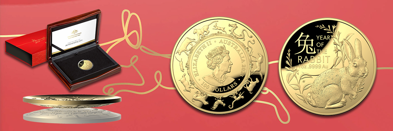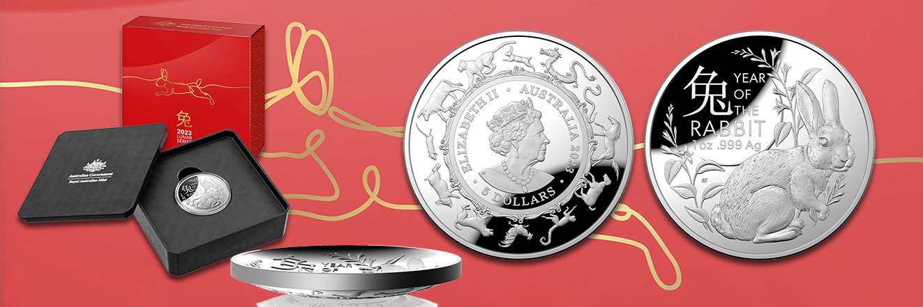 Seit 2020 verausgabt die Royal Australian Mint (RAM) die Münzserie Lunar II als Nachfolger der ersten Zwölfer-Gruppe (nicht zu verwechseln mit der Lunar-Reihe der Perth Mint). Dargestellt sind Motive des chinesischen Mondkalenders. Erhältlich ist RAM-Lunar als Bullion-Goldmünze und als Bullion-Silbermünze sowie in den hier vorgestellten Ausgaben als gewölbte Version auf Polierter Platte. Es handelt sich um den Jahrgang 2023, der dem Jahr des Kaninchens (oder Hasen) gewidmet ist. Dem entsprechend zeigt das Rückseitenmotiv ein im Dickicht sitzendes Wildkaninchen mit zweisprachiger Bezeichnung sowie dem Feingehalt und der Stückelung. Entworfen wurde das Motiv von Bronwyn Scott (BS). Die Vorderseite gibt das Portraitrelief von Queen Elizabeth II. nach Jody Clark (JC) wieder sowie ihren Titel, den Nennwert und den Jahrgang als Umschrift. Eingefasst ist das Motiv von einem Band aus allen zwölf Tierkreiszeichen des Lunar-Kalenders.