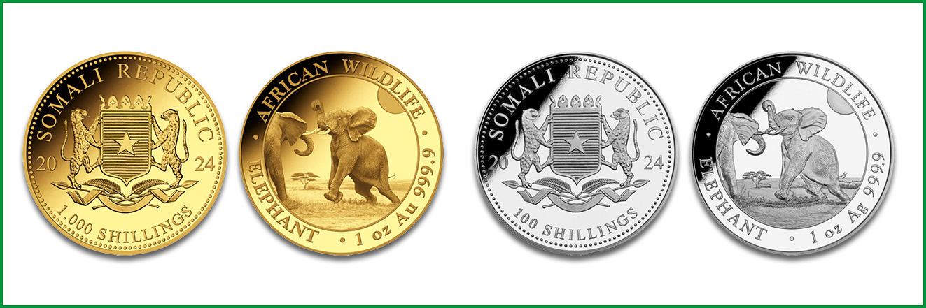 Neu für 2024: African Wildlife Somalia Elephant in Silber und Gold