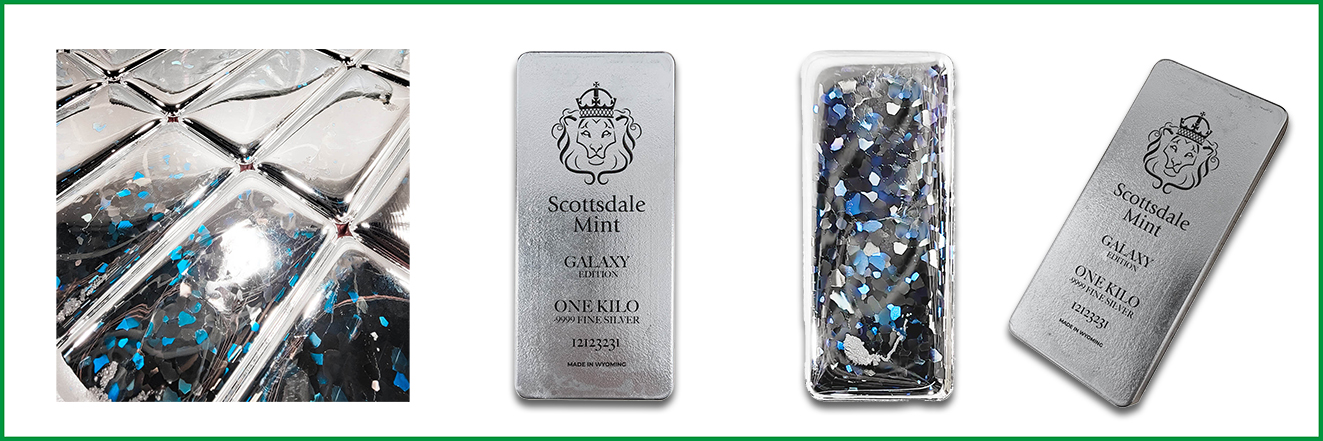 Scottsdale Mint 1 Kilo-Silberbarren Galaxy mit Konfetti-Hologramm