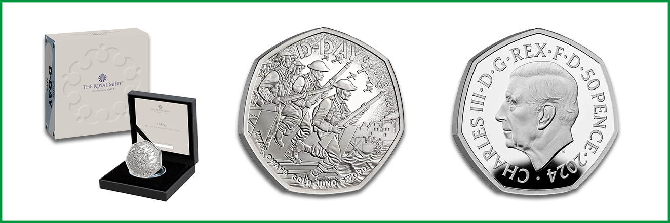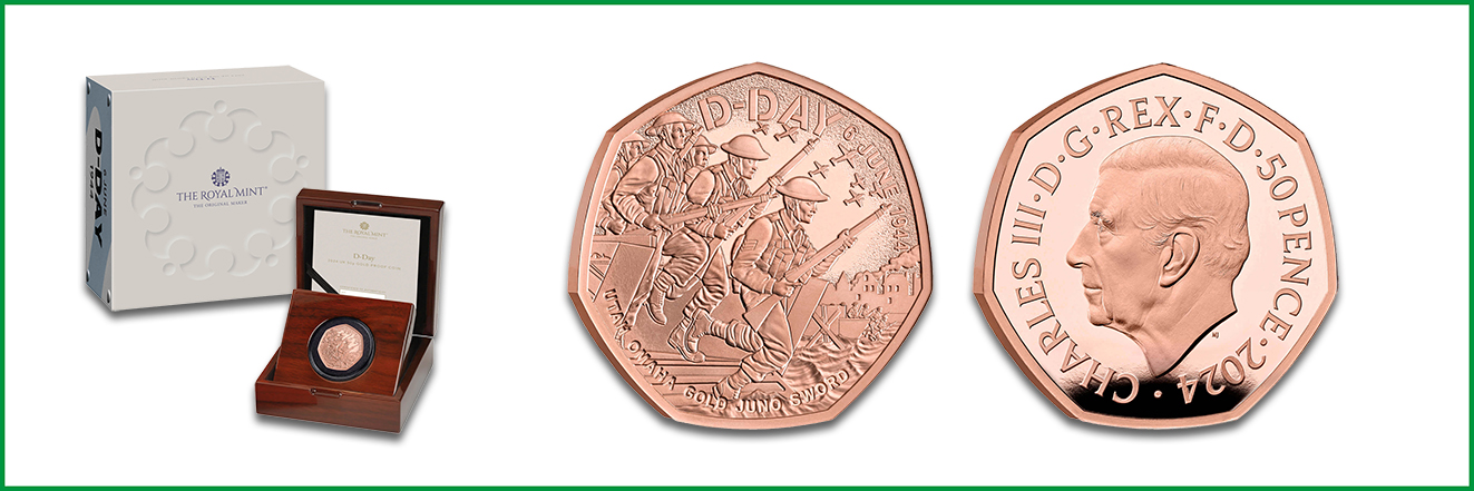 | D-Day 2024 UK | 1/40 oz Gold | 1/4 oz Gold | 2 oz Gold | 50 p Gold | 50 p Silber |