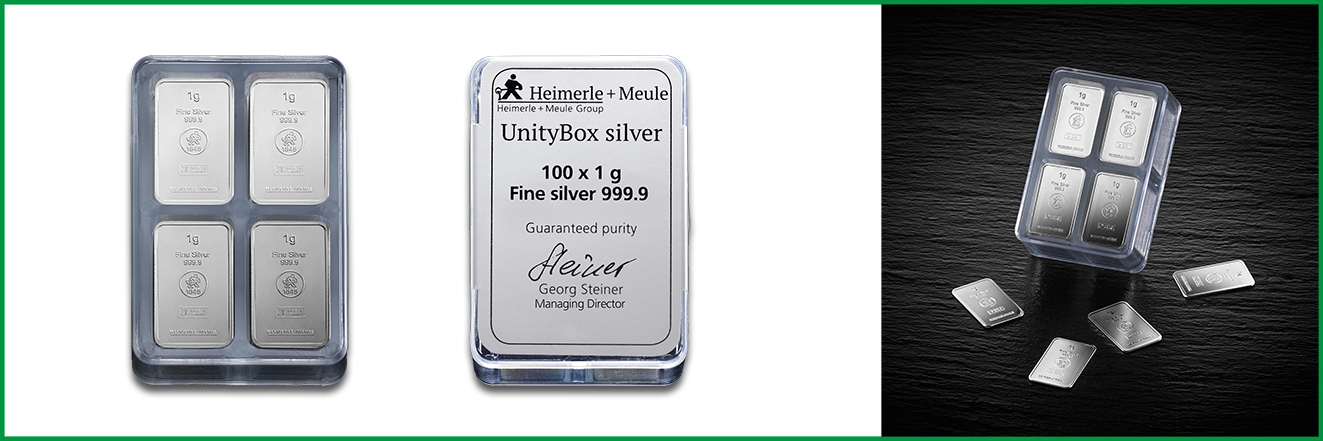 UnityBox 100 x 1 Gramm Silberbarren Heimerle Meule