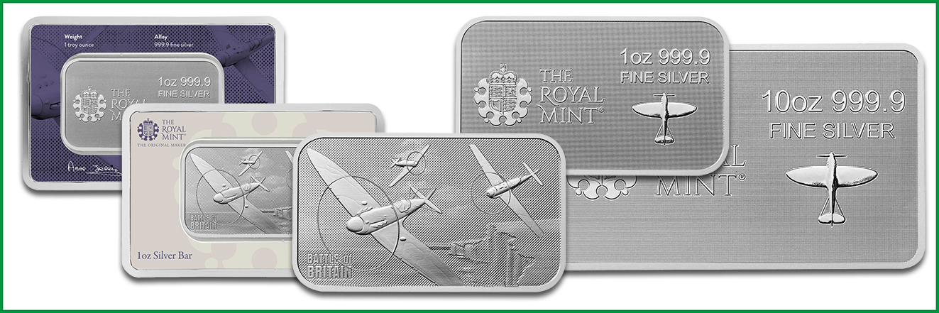 Silberbarren WWII Battle of Britain 1 und 10 Unzen Royal Mint