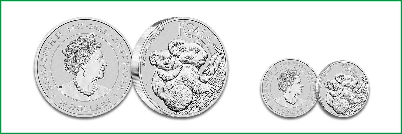 Neben speziellen Sammlerausgaben auf Polierter Platte erscheint die Silbermünze Australian Koala seit 2007 mit jährlich wechselnden Motiven in der Bullionqualität für den Anlagemarkt. Zunächst wird die 1-Unzen-Stückelung des Jahrgangs 2023 mit einer Auflage von 300.000 Stück verfügbar sein und etwas später auch die Einheit zu 1 Kilogramm. Diese wird unlimitiert geprägt, ihre endgültige Auflage ist von der Nachfrage abhängig.