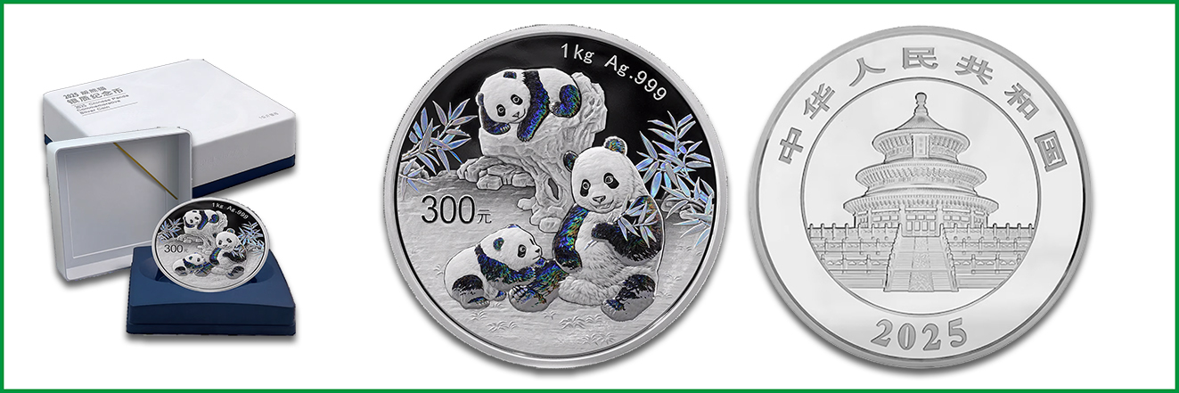 Silberfarbmünze China Panda 2025 zu 1 Kilogramm