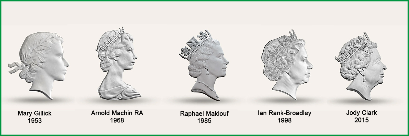 Seit der Krönung von Queen Elizabeth II. im Jahr 1953 verwendete die Royal Australian Mint insgesamt sechs verschiedene Bildnisse der Commonwealth-Monarchin. Das erste Abbild der noch jungen Königin wurde 1953 von Mary Gillick gestaltet. Weitere Designer waren Arnold Machin (1966), Raphael Maklouf (1985), Ian Rank-Broadley (1998), Vladimir Gottwald (2000, nur 50-Cent-Münze »Royal Visit«) und Jody Clark (2015). Das letzte und bekannteste Konterfei wurde 2019 ebenfalls von Jody Clark entwickelt (siehe oben). Es ziert bis heute alle aktuellen Münzen. Seit ihrer Eröffnung im Jahr 1965 stellte die RAM mehr als 15 Milliarden Dezimalmünzen mit dem Bildnis von Queen Elizabeth II. her.
