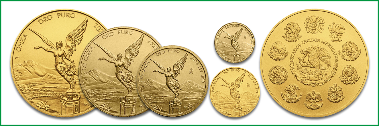 | Goldmünze Libertad 2023 | 1/20 oz | 1/10 oz | 1/4 oz | 1/2 oz | 1 oz |