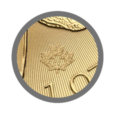 Die Goldmünze Maple Leaf gilt als besonders fälschungssicher, dank integrierter Privy Mark-Lasergravur und der radialen Linien im Münzgrund.