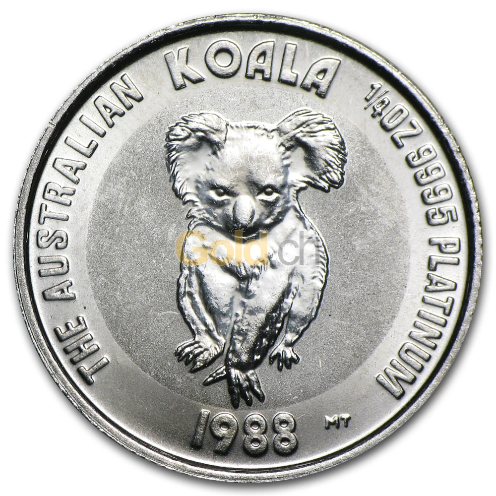 Die Platinmünze Koala wurde zwischen den Jahren 1988 und 2000 von der australischen Prägeanstalt „Perth Mint Australia“ ausgegeben. Bis 2005 wurde die Ausführung geprägt. Sie ist vor allem bei Sammlern sehr beliebt und wird weltweit gerne gehandelt. Erweitert wurde die anfangs noch kleine Stückelung übrigens innerhalb der Jahre. Der Nennwert der Münze liegt zwischen 5 und unglaublichen 3.000 AUD.