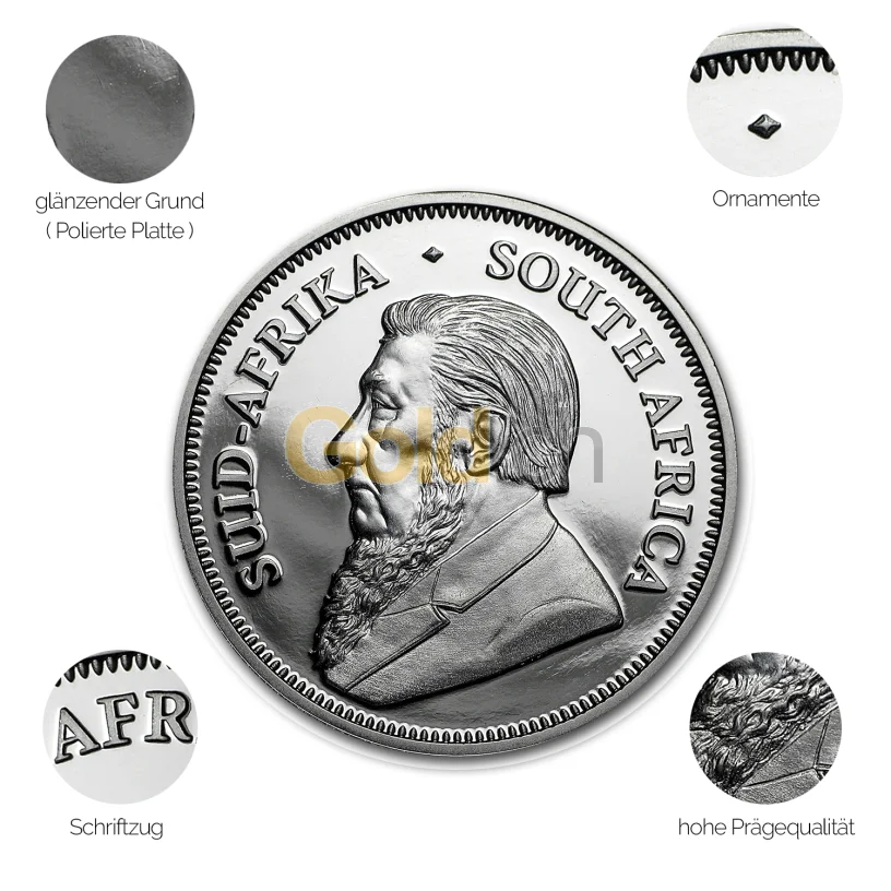Der Krügerrand (auch: Krugerrand) ist bekannt als die weltweit erste Anlagemünze. Im Jahre 1967 wird erstmals die erste Goldmünze mit dem Porträt des afrikanischen Staatsmannes Paul Kruger in der Prägeanstalt Südafrikas, damals Rand Refinery, geprägt. Aufgrund ihrer Beliebtheit und einer langen Tradition ist die Münze im Jahr des 50-jähigen Jubiläums in einer Vielzahl von Sonderausgaben erschienen. Darunter fällt die im Jubiläumsjahr 2017 erstmalig geprägte Platinmünze in der Stückelung zu 1 Feinunze. Diese spezielle Ausgabe enthält einen Feingehalt von 999,9 Platin. Neben dem hochgradig beliebten Motiv ist die Münze auf 2.017 Stück limitiert und nur als Polierte Platte erhältlich. Eine weitere Besonderheit ist der Nennwert von 10 Rand. Durch ihre Seltenheit und bisher einmalige Prägung ist sie jetzt schon zu einer beliebten Sammlermünze avanciert.