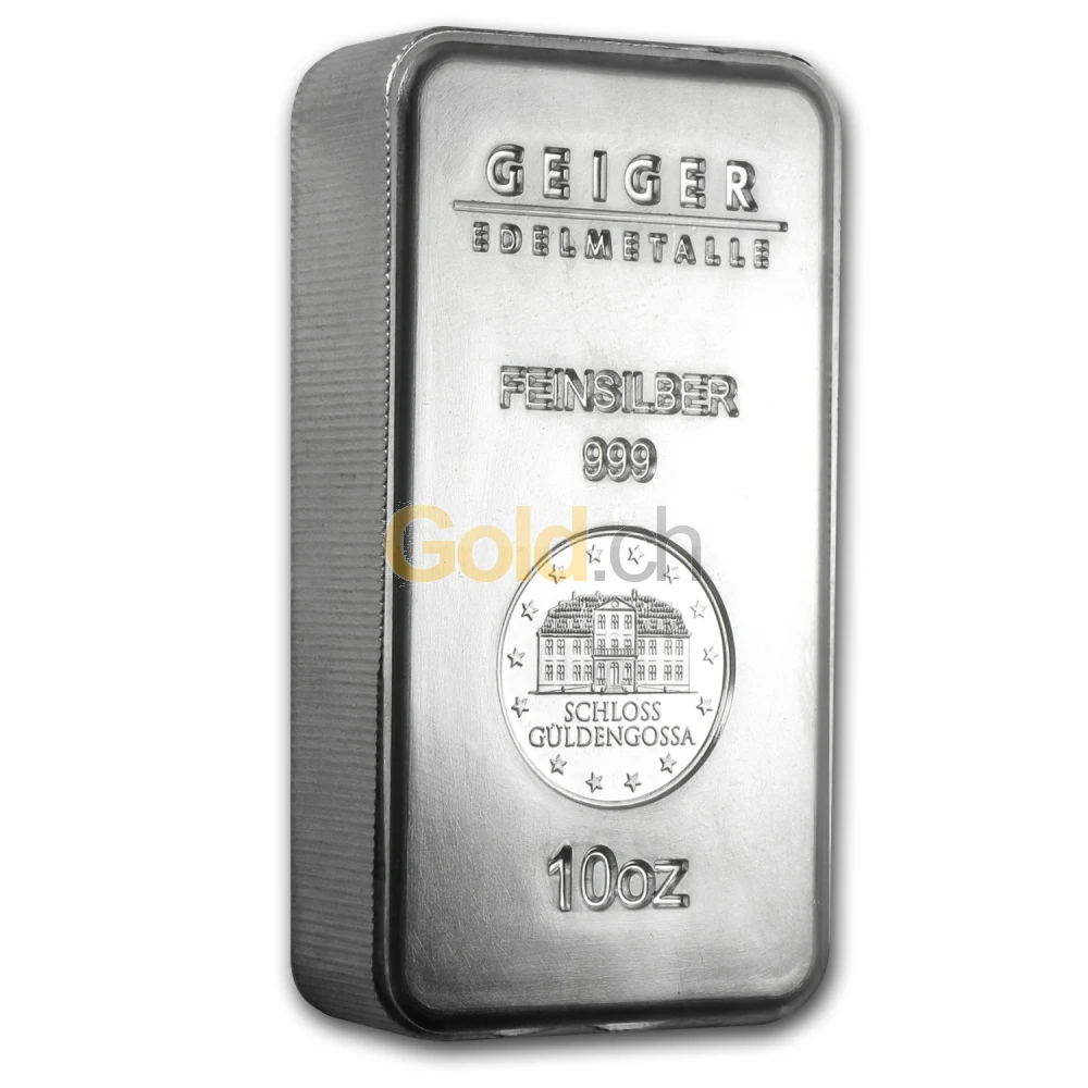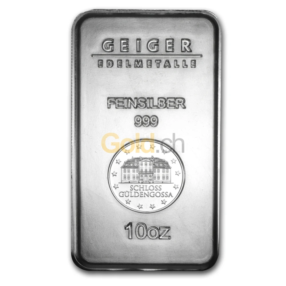 Die 10 Unzen Silberbarren liegen mit ihrer Größe zwischen den 250g und 500g Barren, die zum Kauf bereitstehen. Der 10-Unzen Barren wird von vielen Herstellern erzeugt und weißt einen Feingehalt von rund 0,999 Prozent auf. Die Größe bietet Anlegern bereits eine durchaus solide Liquidität und wird häufig von Unternehmen gekauft um Investments auszugleichen. Der Feingehalt, das Herstellerlogo sowie eine Seriennummer werden auf den Barren geprägt.