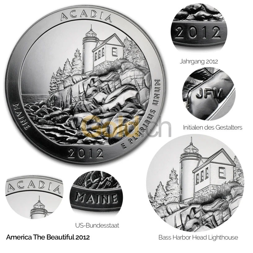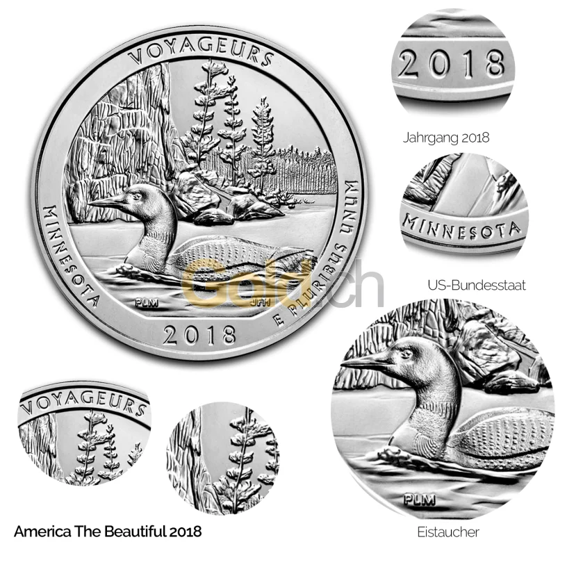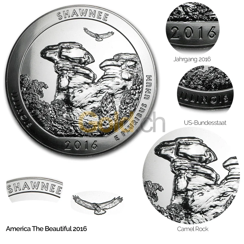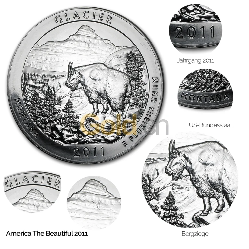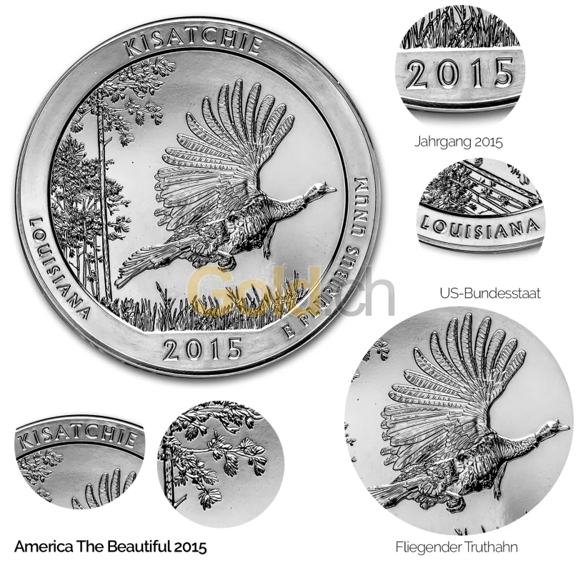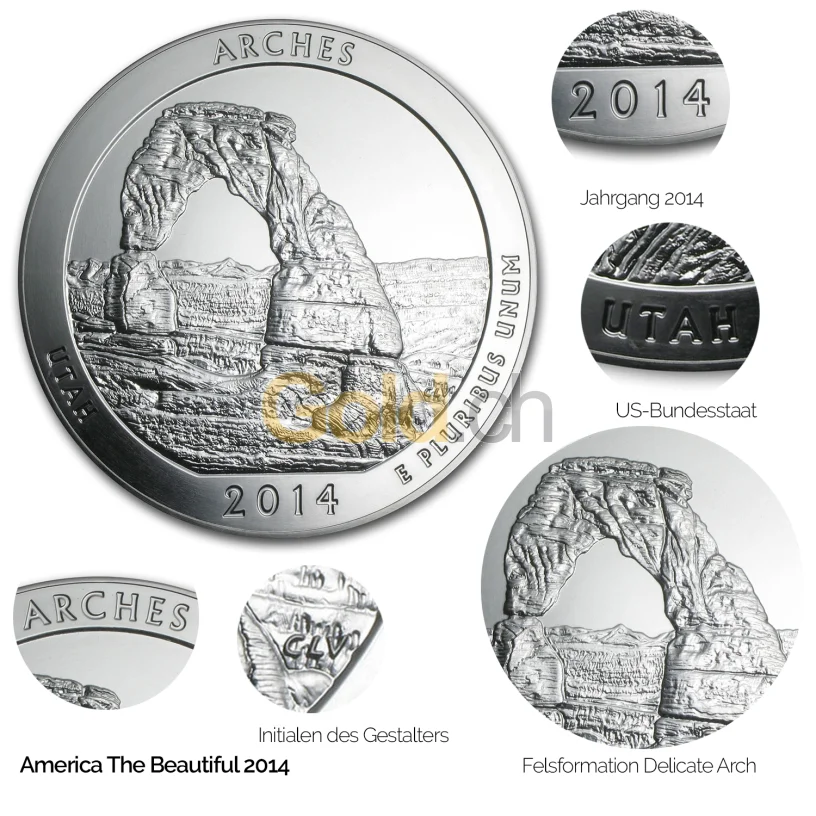 Seit 2010 besteht die eindrucksvolle Serie „America the Beautiful“ (Abk. ATB). Die amerikanische Prägeanstalt „United States Mint“ erweitert sie jährlich um fünf neue Motive. Die Silbermünzen zeigen verschiedene Sehenswürdigkeiten der Vereinigten Staaten Amerikas. Auf der Vorderseite, mit dem Nennwert von einem 1/4 US-Dollar (auch Quarter genannt), ist der Gründervater und die amerikanische Ikone George Washington zu sehen. Neben ihren vielfältigen Motiven beeindruckt die Münzserie durch die stattliche Größe der einzelnen Exemplare von 7,62 cm und einem Feingewicht von 5 Unzen (oz), was 155,5 Gramm Silber entspricht. Der Feingehalt liegt bei 99,9 % Silber. Die Serie der bisher größten Bullion-Silbermünzen, die das Werk der United States Mint verließen, waren im Jahre 2010 auf eine Stückzahl von 33.000 pro Motiv limitiert. Aufgrund ihrer hohen Beliebtheit bei Sammlern und Anlegern wurde die Auflagenzahl im darauffolgenden Jahr auf 126.000 erhöht und sank anschließend wieder stetig. Die umfangreiche Serie „America the Beautiful“ bietet eine Herausforderung für jeden Münzsammler. Daneben dient das hohe Feingewicht der Bullionmünzen als eine besondere Gelegenheit zur Wertanlage.