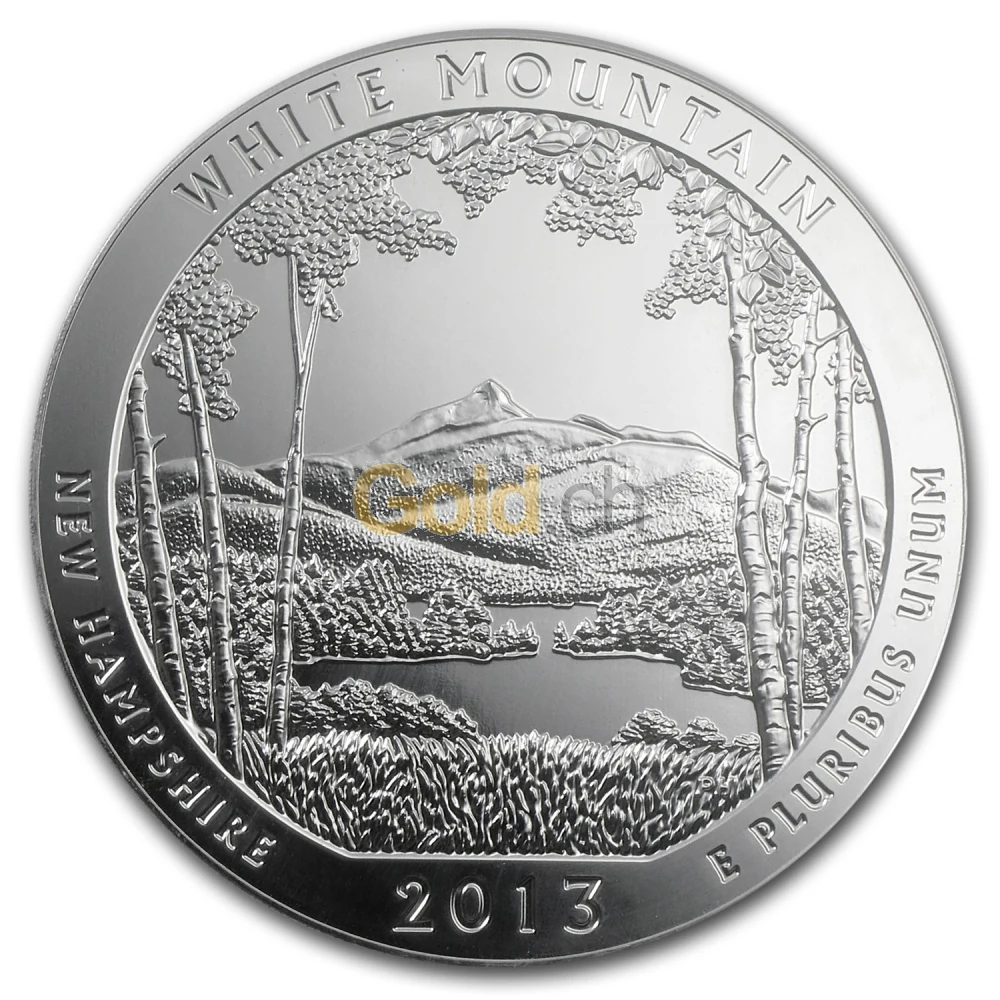 Auf der ersten Silbermünze aus dem Jahre 2013 ist am Horizont der Landschaft der Berg „Mount Chocorua“ zu sehen. Im Vordergrund ist ein sumpfiges Gebiet geprägt, das zur linken und rechten Seiten von Birken umrahmt ist.