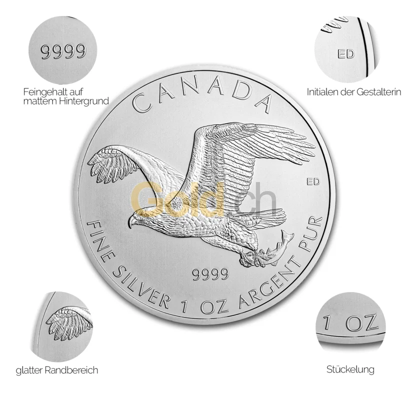 Kanada, bekannt als Land weiter Landschaften und Atmen beraubender Natur, das Lebensraum für einzigartige Tierarten bietet. Zu Ehren des nordamerikanischen Landes prägte die Royal Canadian Mint vier Motive der symbolträchtigsten Raubvögel Kanadas auf Anlagemünzen.