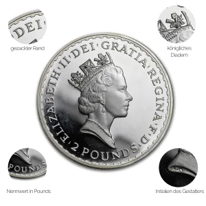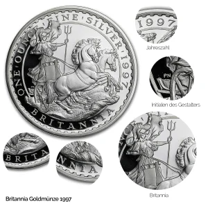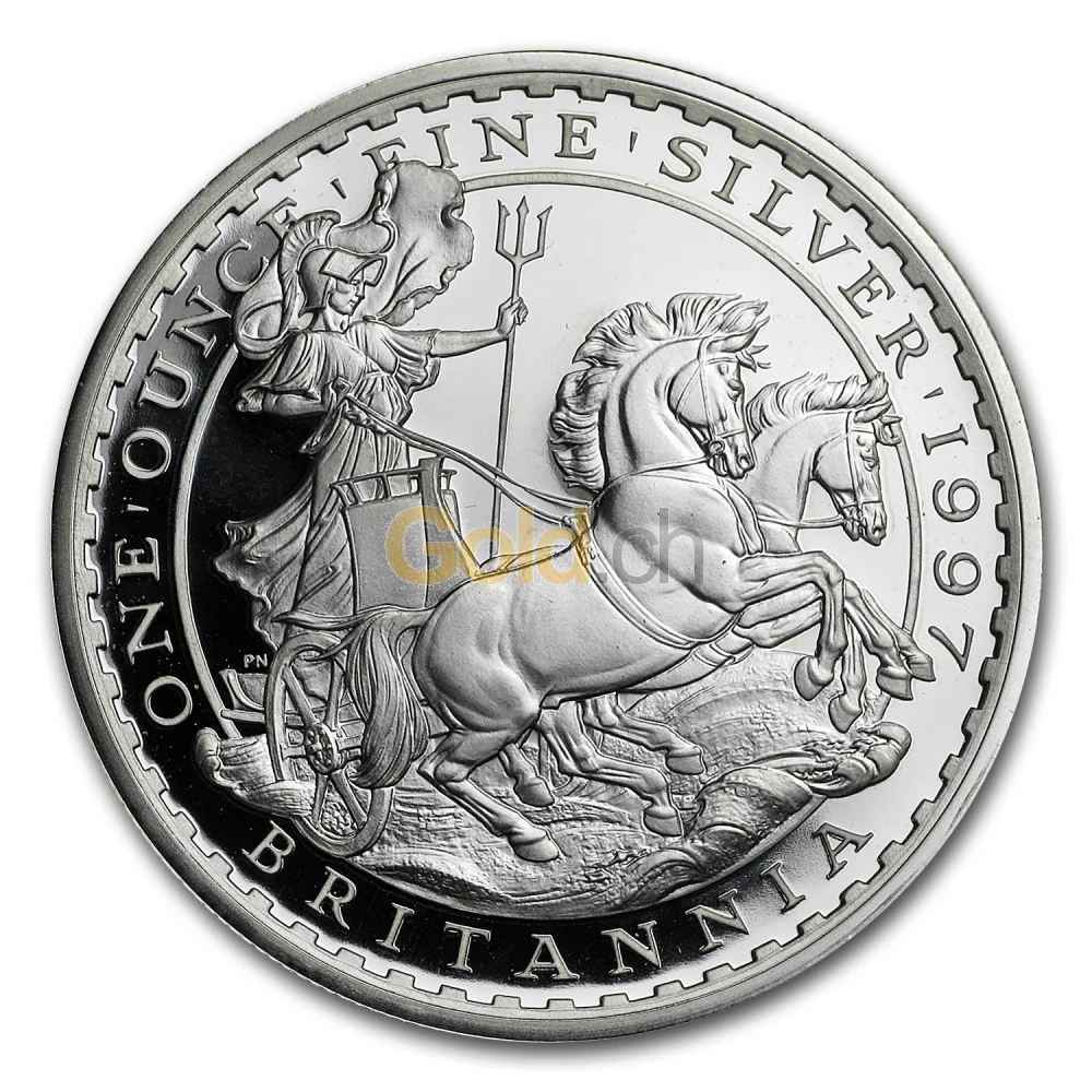 Die Anlagemünze Britannia stammt aus dem Hause der britischen Prägeanstalt Royal Mint. Im Jahre 1997 wurde die erste Britannia-Silbermünze in vier Stückelungen (1/10, ¼ , ½ und 1 Unze) geprägt. Heute ist die Britannia hauptsächlich als Anlagemünze mit dem Gewicht von 1 Unze verbreitet. Die erste Auflage war nur als Polierte Platte erhältlich. Die darauffolgenden Auflagen sind als Stempelglanz (jährlich: 2.500 Stück) und Polierte Platte (jährlich: 100.000 Stück) erhältlich. Der Nennwert der Münzen reicht von 0,20 über 0,50 bis zu 1 und 2 Pfund. Der Feingehalt der Silbermünze beträgt seit 2013 99,9 %. Zuvor wurde 958 Silber verwendet. Die Britannia gilt als die erste Anlagemünze Europas und bietet bis heute eine attraktive Gelegenheit zur Anlage. Durch ihr wechselndes Motiv ist sie ein besonderes Sammlerstück.