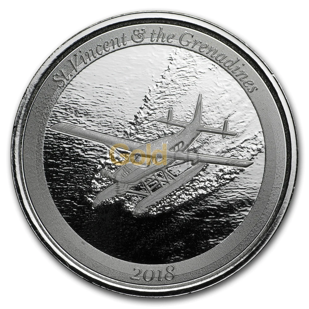 Auf der achten Silbermünze der Serie landet ein Wasserflugzeug auf dem Karibischen Meer der Inseln St. Vincent und den Grenadinen. Die Inselgruppe ist bekannt für ihre weißen Strände und bisher relativ unberührt vom Tourismus. Dadurch, dass die einzige Transportmöglichkeit auf die Inseln das Wasserflugzeug bietet, sind die Inseln schwer zu erreichen. Umso mehr lohnt es sich, die abwechslungsreiche Flora und Fauna der Region zu entdecken.