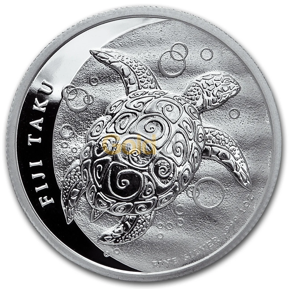 Die "Fiji Taku" Münze ist eine ganz besondere Silbermünze, die von der "Reserve Bank of Fiji" nun schon seit 2010 herausgegeben wird. Herausgeber ist die „New Zealand Mint“. Die Münze zeigt eine Karettschildkröte, welche von den Bewohnern der Fidschi-Inseln nahe Australiens, auch "Taku" genannt wird. Die Schildkröte ist vor allem im Pazifik weit verbreitet und steht seit 1996 unter Artenschutz. Das Motiv ist jährlich gleichbleibend. Auf der Rückseite befindet sich das Portrait der britischen Königin Queen Elizabeth II., als Oberhaupt von Fidschi, nach einem Entwurf von Raphael Maklouf. Viele Sammler lieben die Münze, wegen ihrem einzigartigen Design. Doch auch für Anleger ist die Münze interessant, liegt ihr Nennwert deutlich über dem Börsenwert von Silber. Die Münze erfreut sich großer Nachfrage weltweit und wird immer gerne gehandelt.