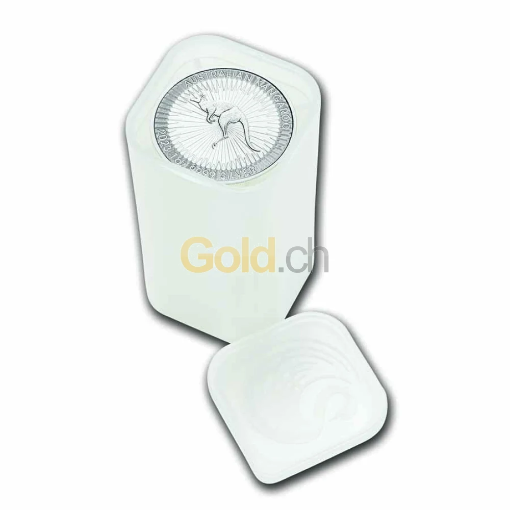 Erhältlich ist die Silbermünze einzeln gekapselt, als versiegelte Tube mit 25 Stück oder in der blauen Masterbox zu 250 Exemplaren (gefüllt mit 10 Tuben). Damit bietet das Silber-Känguru für jedes Investitionsvolumen die passende Ausgabegröße.