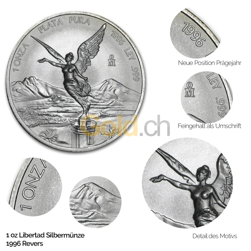 Als weltweit älteste Silberbullionmünze besitzt der mexikanische Libertad eine lange Historie. Seit 1982 wird sie von den Vereinigten Mexikanischen Staaten in der Standardstückelung zu 1 Feinunze Silber in Stempelglanzqualität ausgegeben. Weitere Einheiten kamen in den Folgejahren dazu. Ihr Feingehalt umfasst 999/1000 Silber, der Rand ist seit 1990 geriffelt. Für die Prägung zeichnet die Casa de Moneda de México oder Mexican Mint verantwortlich. Vorder- und Rückseite zeigen seit der Erstausgabe die gleichen Motive mit Adler und Siegesgöttin, die im Laufe der Zeit jedoch mehrfach angepasst wurden. Obwohl die Silbermünze keinen aufgeprägten Nennwert besitzt, gilt sie als gültiges Zahlungsmittel in Mexiko. Zugrunde gelegt wird der tagesaktuelle Silberkurs in der jeweiligen Ausführung. Neben dem Silber-Libertad erscheint seit 1981 ebenfalls der Gold-Libertad für Anleger sowie diverse Sonderprägungen für Sammler.
