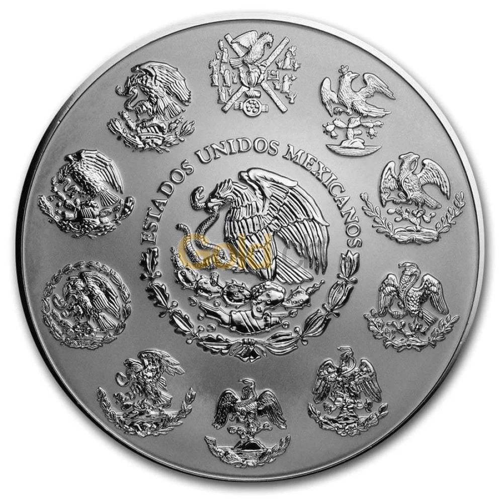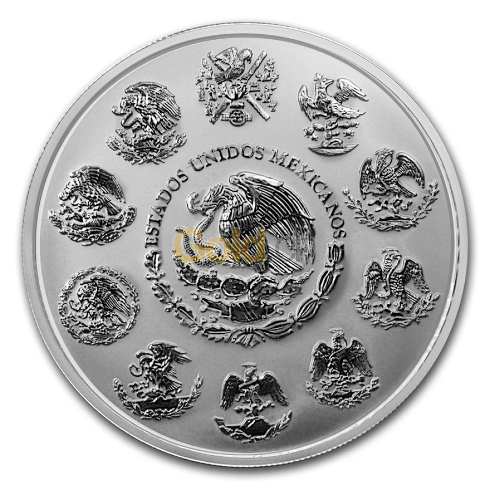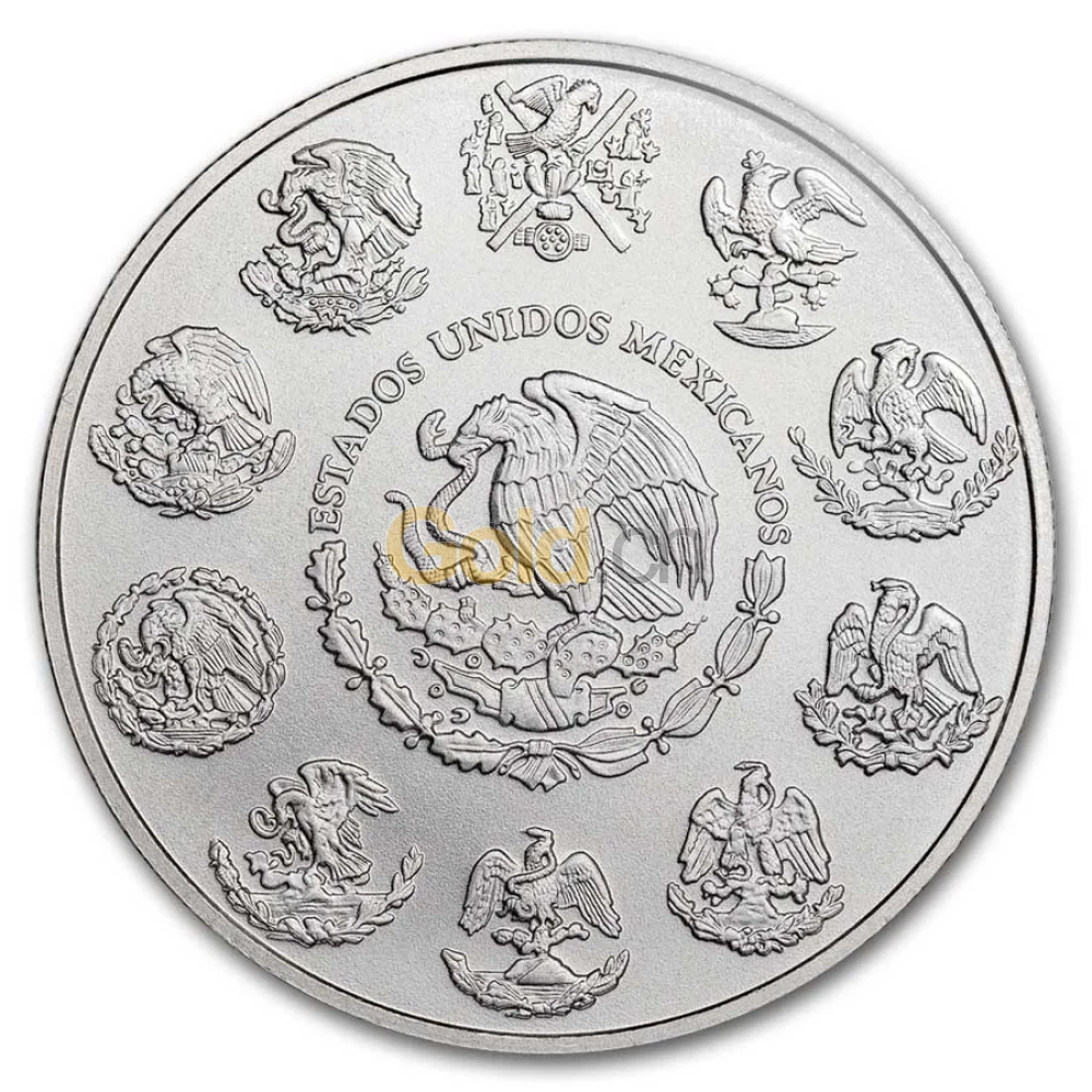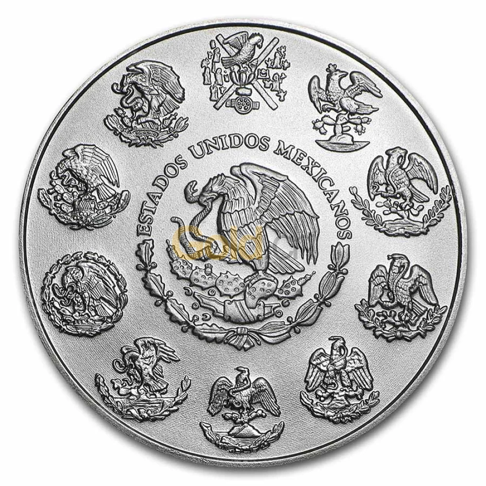 Das Rückseitenmotiv bildet die geflügelte Siegesgöttin Victoria ab, als Sinnbild der mexikanischen Unabhängigkeit. Sie ist dem Denkmal »El Ángel de la Independencia« nachempfunden, das in Mexico City in der Innenstadt auf einer Siegessäule steht. Umgeben ist das Monument von den landschaftsprägenden Vulkanen Popocatépetl und Iztaccíhuatl. Als Umschrift erscheinen die Feindaten in spanischer Sprache: »1 ONZA PLATA PURA 2020 LEY .999«, mit Prägejahr am Münzhimmel. In einer freien Fläche im rechten Bereich ist zudem das Logo der Mexican Mint als Prägezeichen integriert. Der Münzgrund weist eine feine Struktur auf.