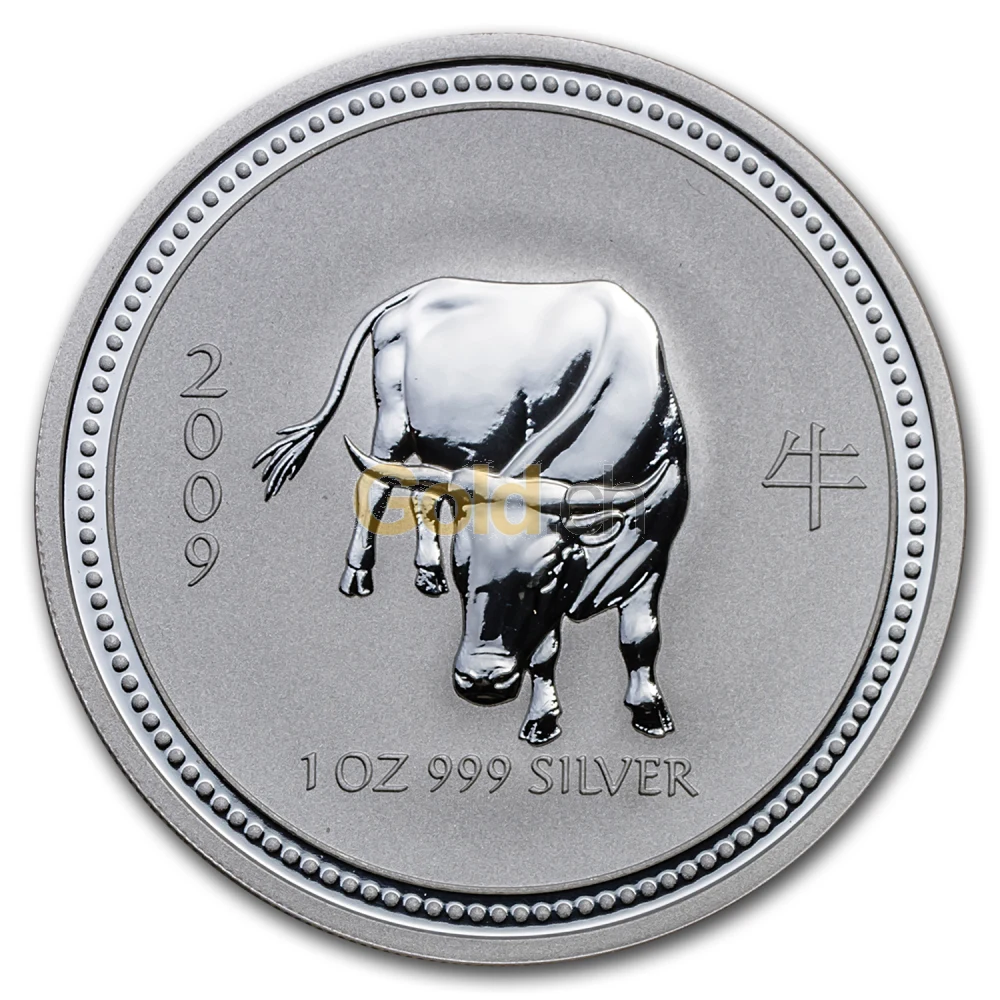 Die Silbermünze aus dem Jahre 2009 zeigt das Tierkreiszeichen des Ochsen. Das glänzende Fell des Tieres, welches seine Hörner dem Betrachter entgegen streckt, hebt sich vom matten Hintergrund ab. Der Ochse steht mit leicht gebogenem Körper da, während sein Schwanz leicht zur Seite hin absteht.