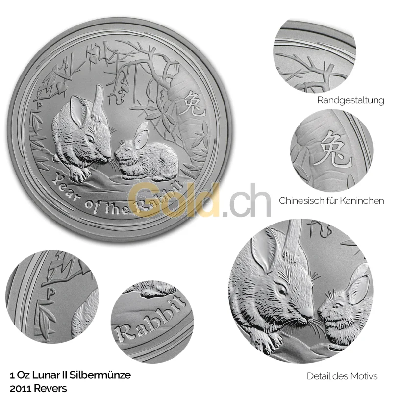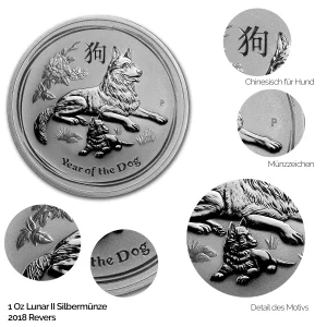 Da jedoch die Han-Schrift oftmals verschiedene Deutungen zulässt, verändert sich der Hase in ein Kaninchen, die Maus wird zu einer Ratte und der Ochse zum Büffel oder Stier. Die Schriftzeichen sind ebenfalls auf den Reversseiten der Lunar-Silbermünze aufgeprägt. Zusätzlich findet sich dort auch das jeweilige Tier in Englisch: für 2018 zum Beispiel "Year of the Dog". In unserem großen Jahrgangsüberblick haben wir die unterschiedlichen Münzmotive der Himmelszeichen und deren Bedeutung für Sie zusammengefasst.