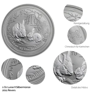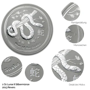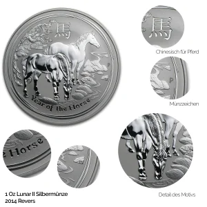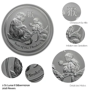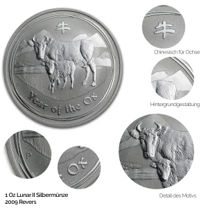 Die australischen Silbermünzen der Lunar Serie II werden seit 2008 von der Perth Mint produziert und herausgegeben. Auf ihrer Rückseite bieten sie ein jährlich wechselndes Tiermotiv, das dem asiatischen Lunar-Kalender mit seinen 12 Tierkreiszeichen folgt. Erhältlich ist das Silber in Einheiten zu 1/2 Unze, 1 Unze, 2 Unzen, 5 Unzen und 10 Unzen sowie 1/2 Kilogramm (nur 2008-2010), 1 Kilogramm und 10 Kilogramm. Dank des hohen Feinwerts von 999,9/1000 ist die Silbermünze gleichermaßen als Anlege- wie Sammlermünze gefragt, die insbesondere über längere Zeiträume eine stabile Preisentwicklung verzeichnet. Dies unterstützt auch die Anhebung des Feinsilbers, das bis 2016 noch bei 999/1000 lag.